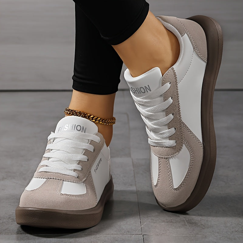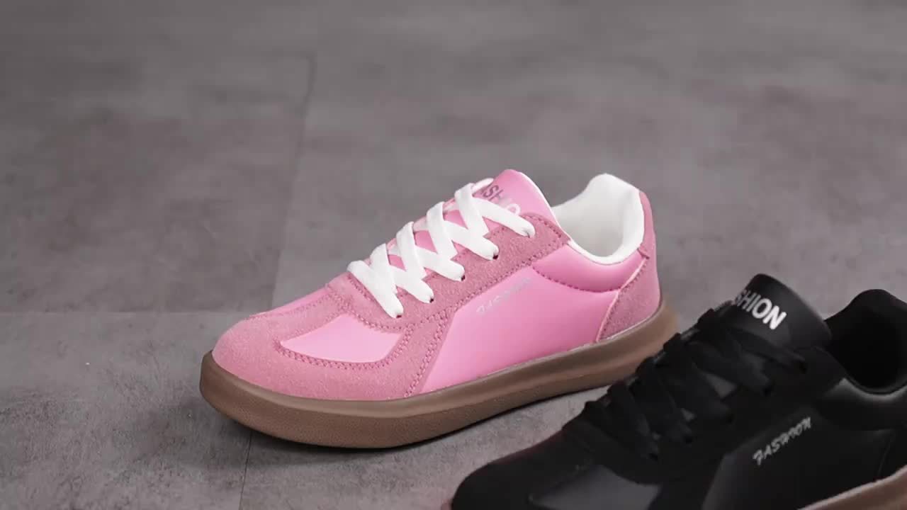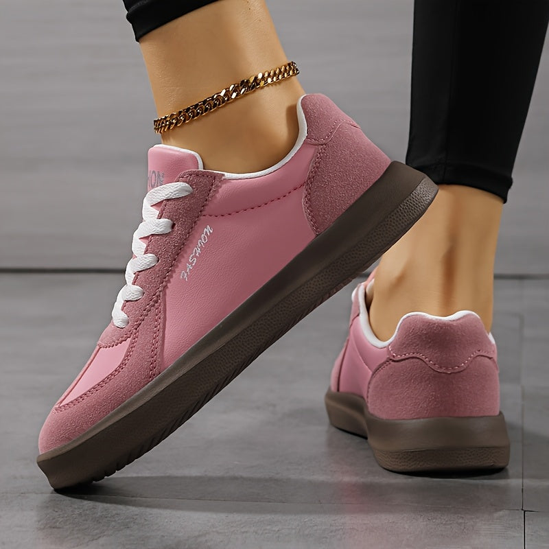Կանացի թեթև շնչող, պատահական սպորտային կոշիկներ - ցածր վերևի ժանյակավոր սքեյթ կոշիկներ՝ չսահող փափուկ տակացով, վարդագույն և սպիտակ դիզայնով, հարմարավետ հագուստ բոլոր սեզոններում