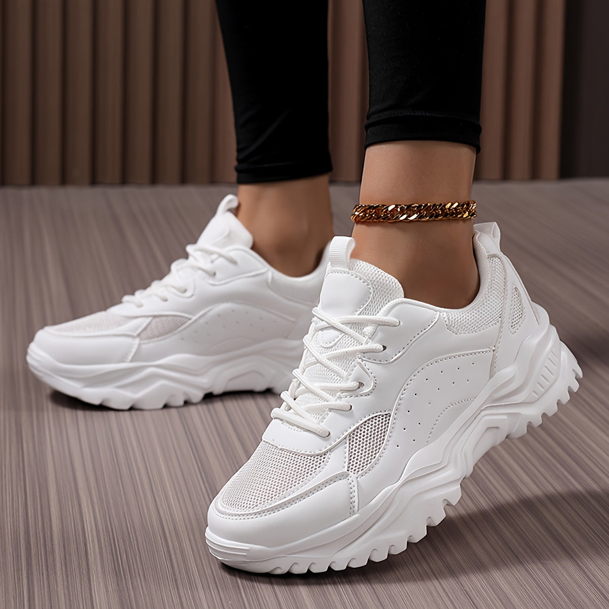 Կանացի թեթև, հաստ սպորտային կոշիկներ՝ բազմակողմանի կորեական ոճի հայրիկի կոշիկներ՝ հաստ ներբանով, շնչող ցանցկեն վերին մասով, առօրյա, կապիչով սպորտային կոշիկներ՝ սպիտակ, կանաչ/սպիտակ և սև/վարդագույն գույներով։
