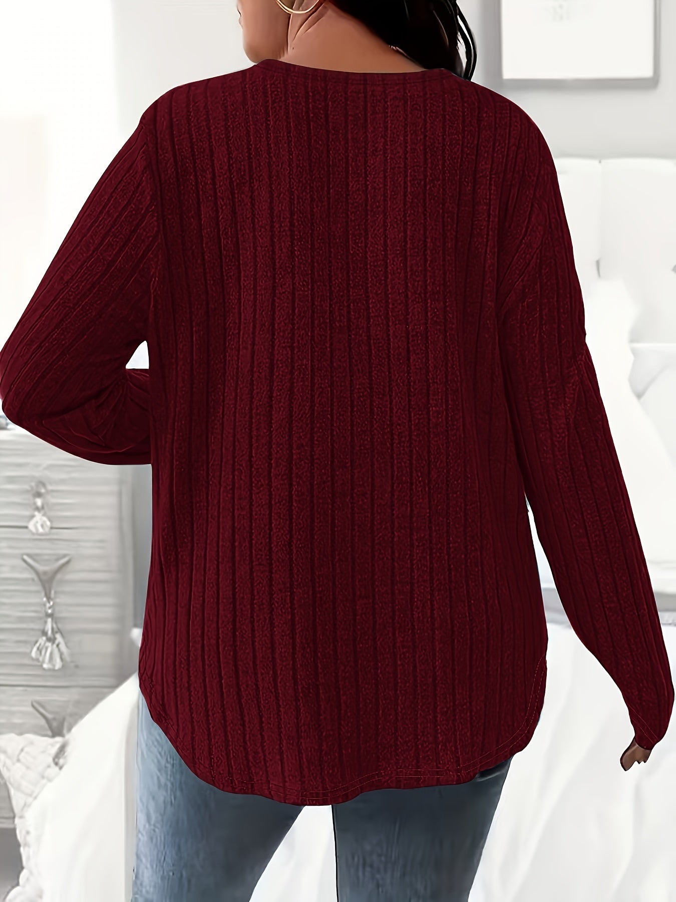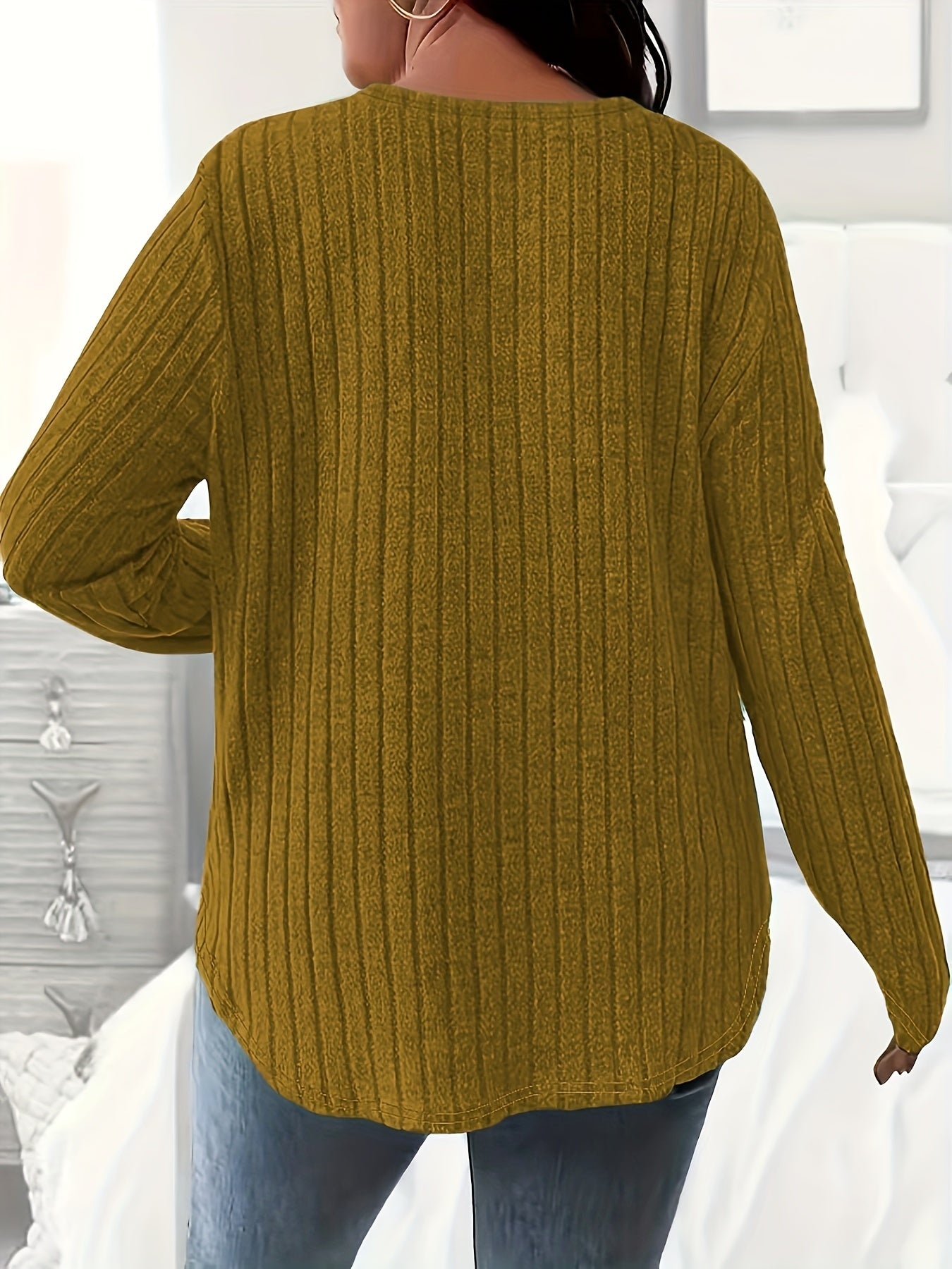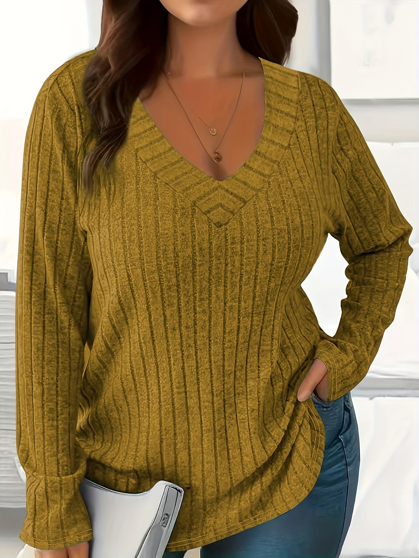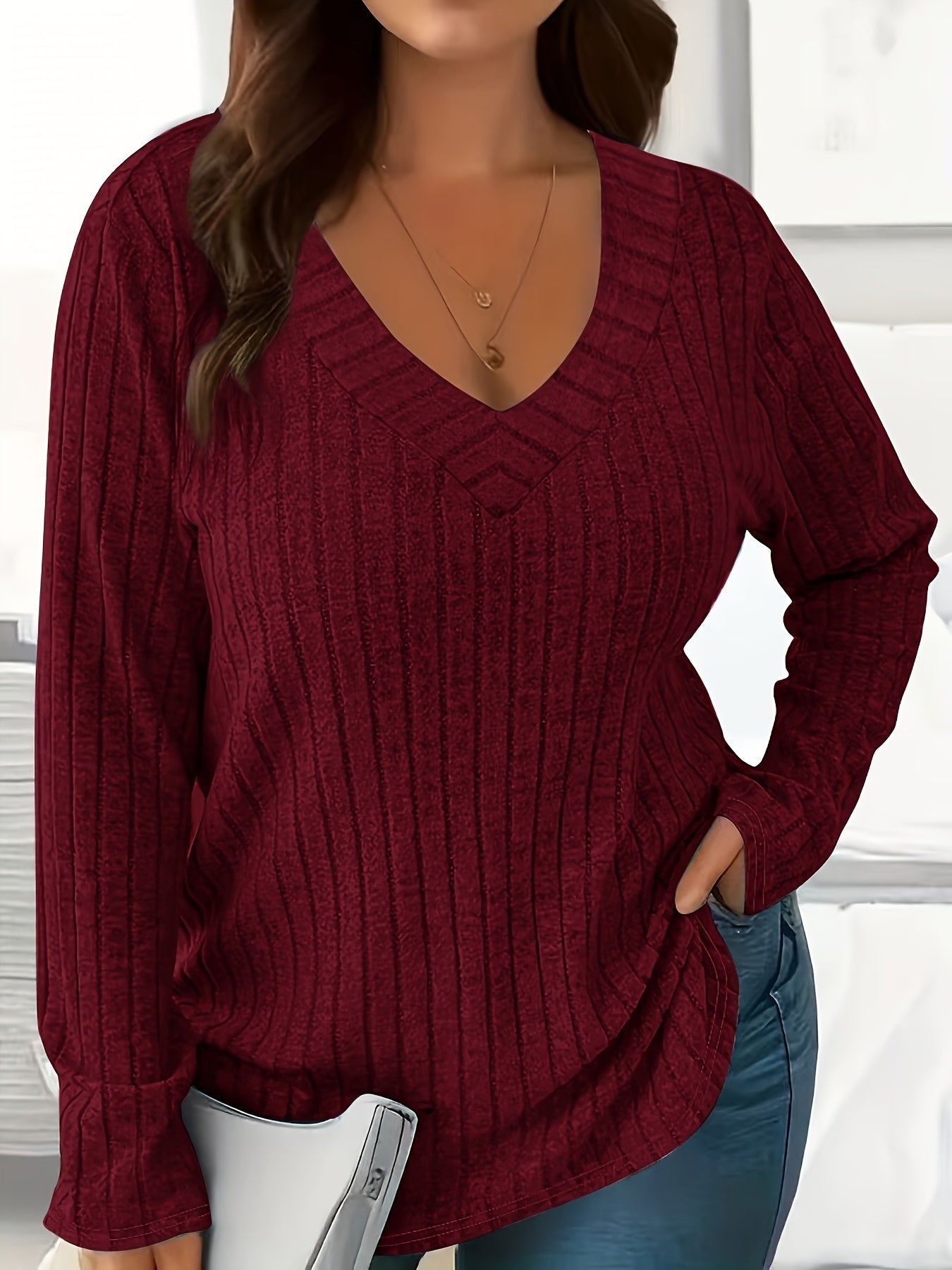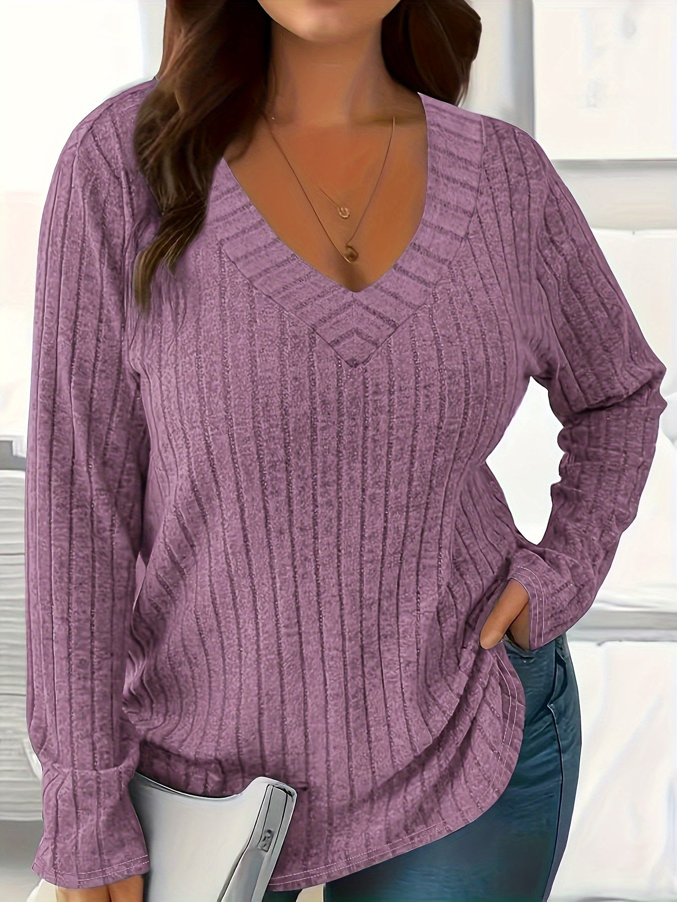Կանացի ազատ պիտանի V- պարանոցի պոլիեսթեր շապիկ փափուկ և շնչող գործվածքով, բոլոր սեզոնային պատահական երկարաթև թիկնոց, լվացվող մեքենայում