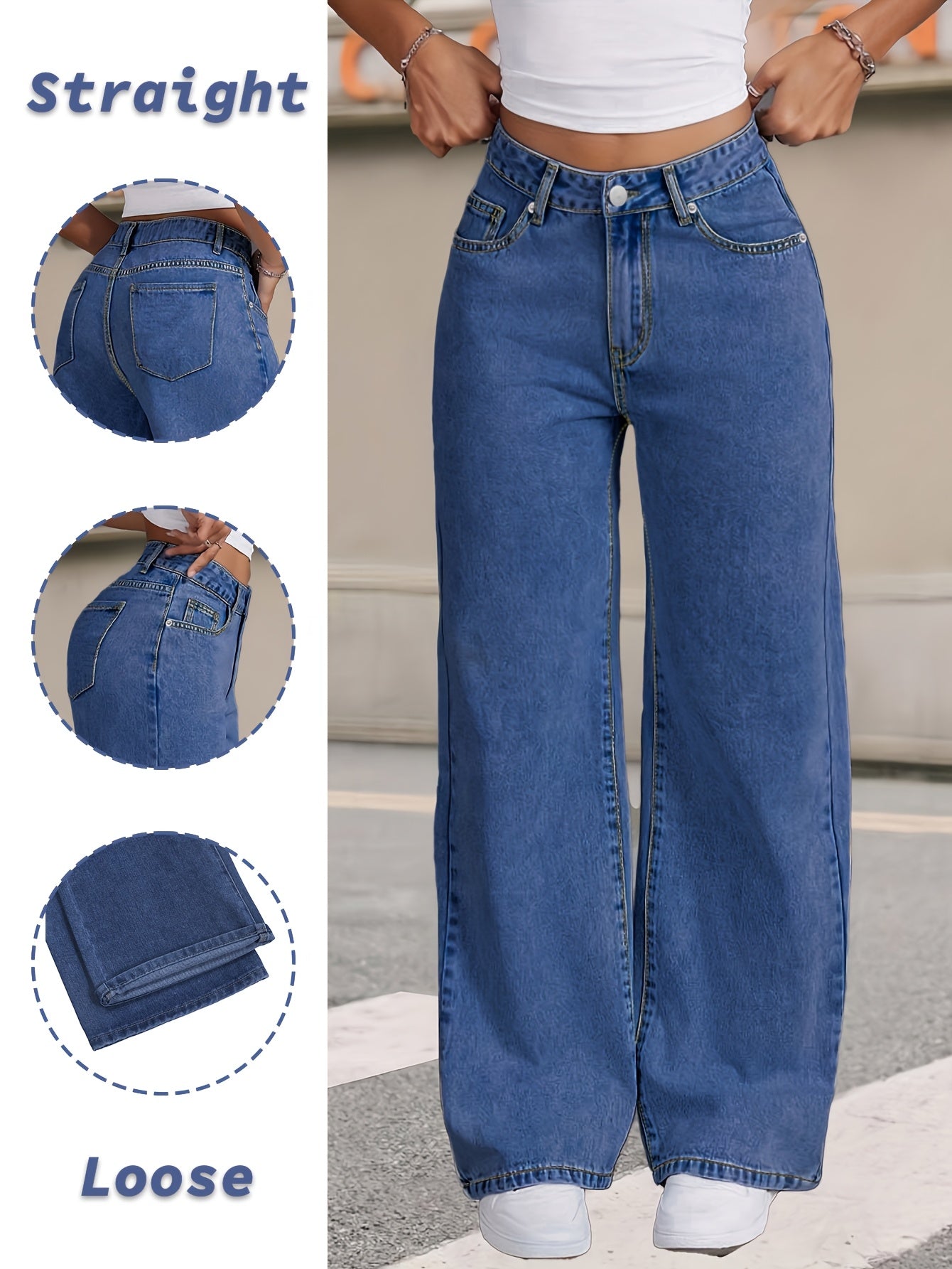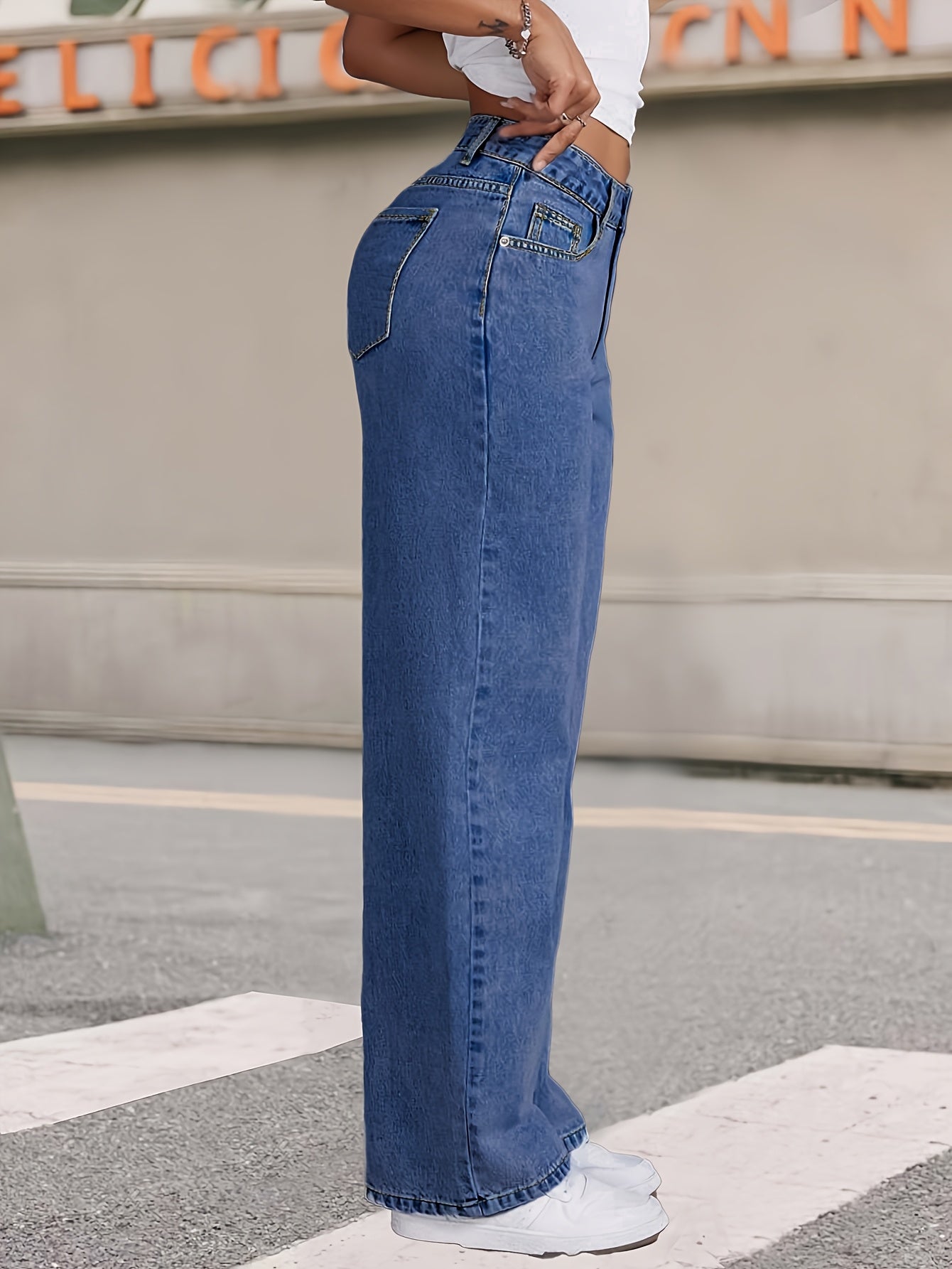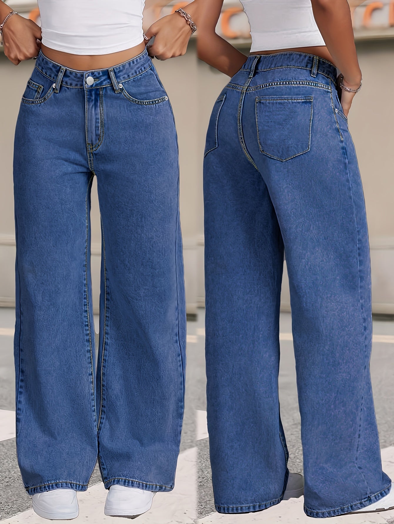 Կանացի ցածրաճճի ազատ ոտքերով ջինսեր, Vintage Y2K ոճ, ռետրո կապույտ ջինս դասական հինգ գրպանի դիզայնով, չձգվող գործվածք, մեքենայով լվացվող - կատարյալ բոլոր եղանակների համար