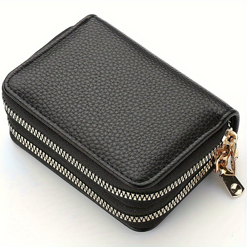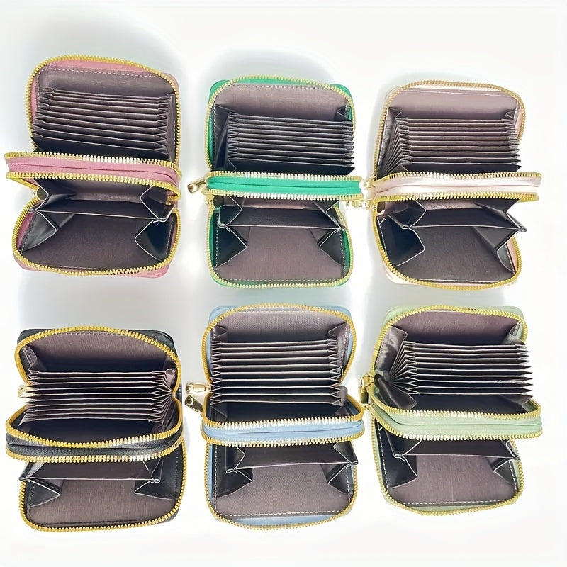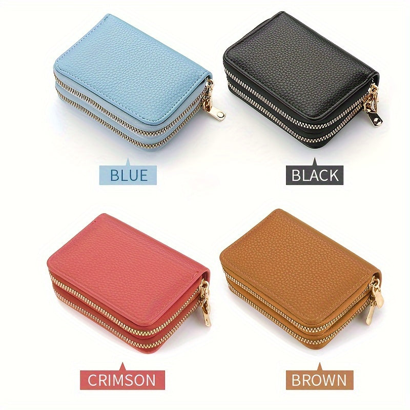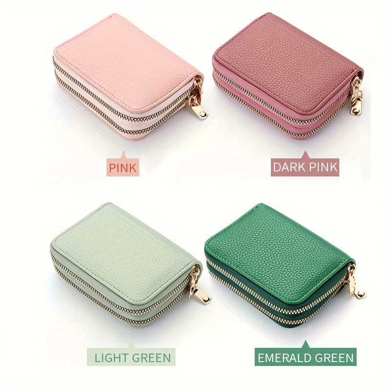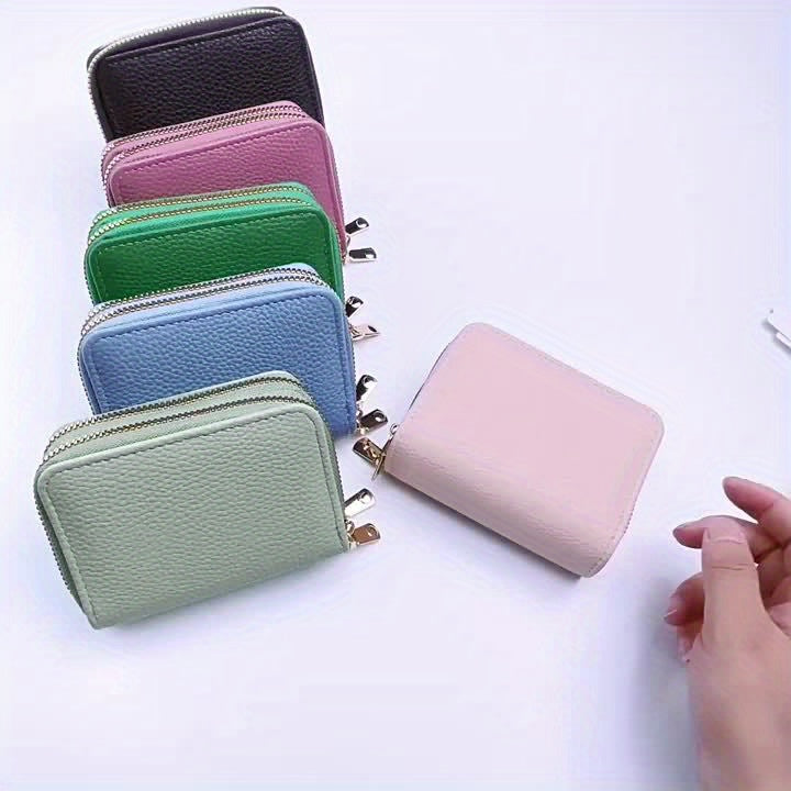 Կանացի մինի կրկնակի կայծակաճարմանդ դրամապանակ, միագույն կրեդիտ քարտի պահարան, բազմաֆունկցիոնալ տարողությամբ մետաղադրամների դրամապանակ Unisex պայուսակ ամենօրյա օգտագործման համար