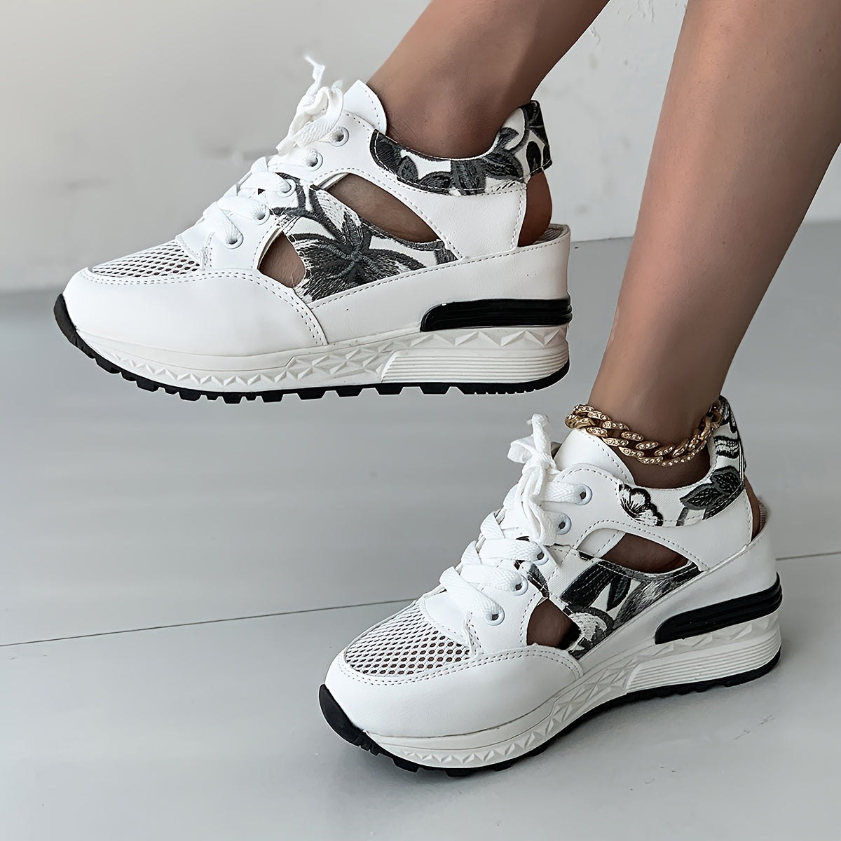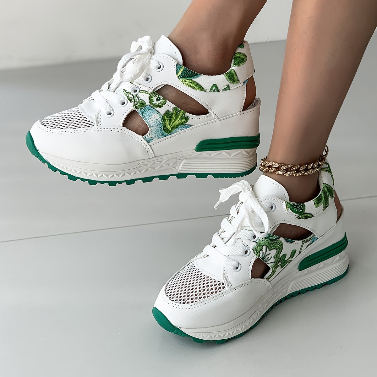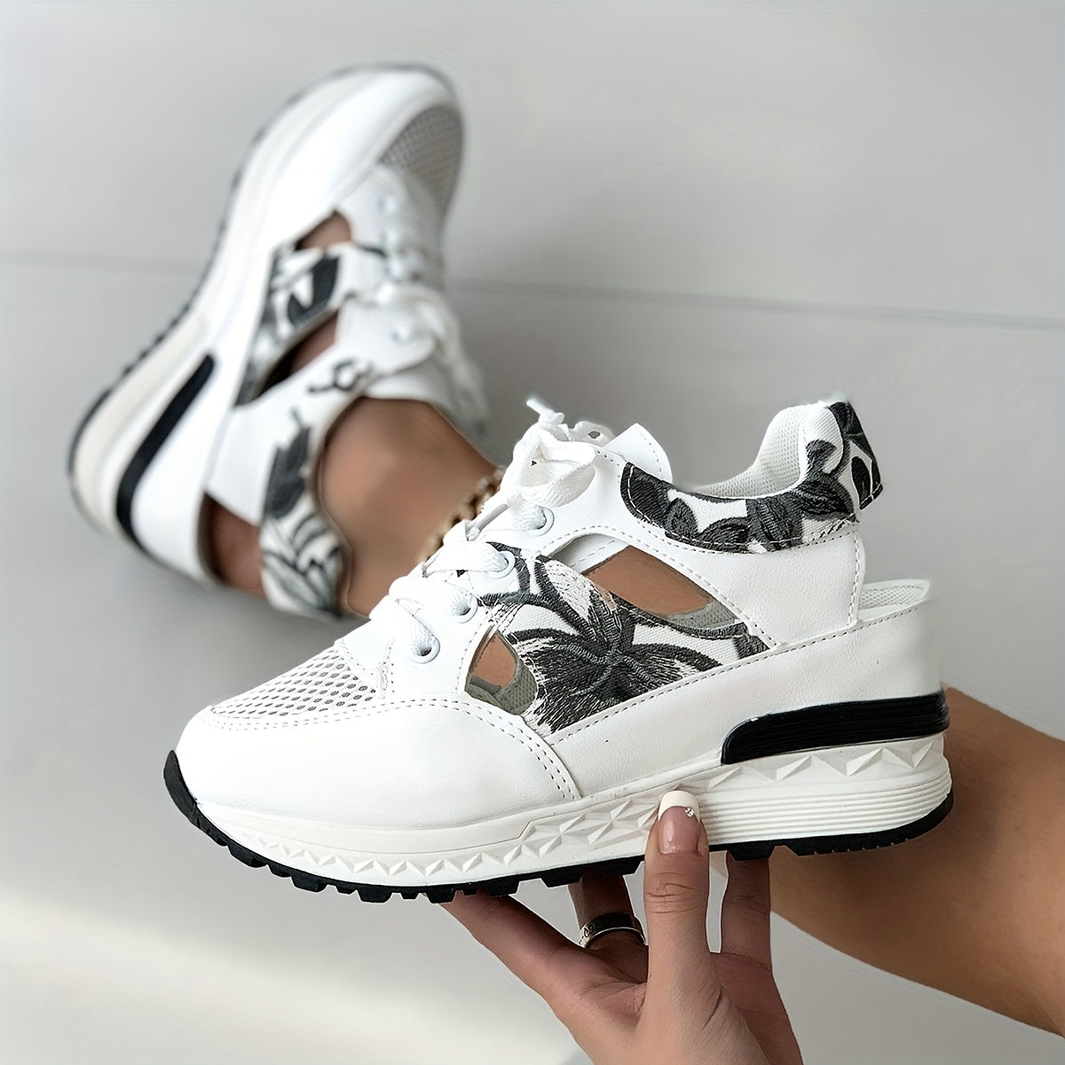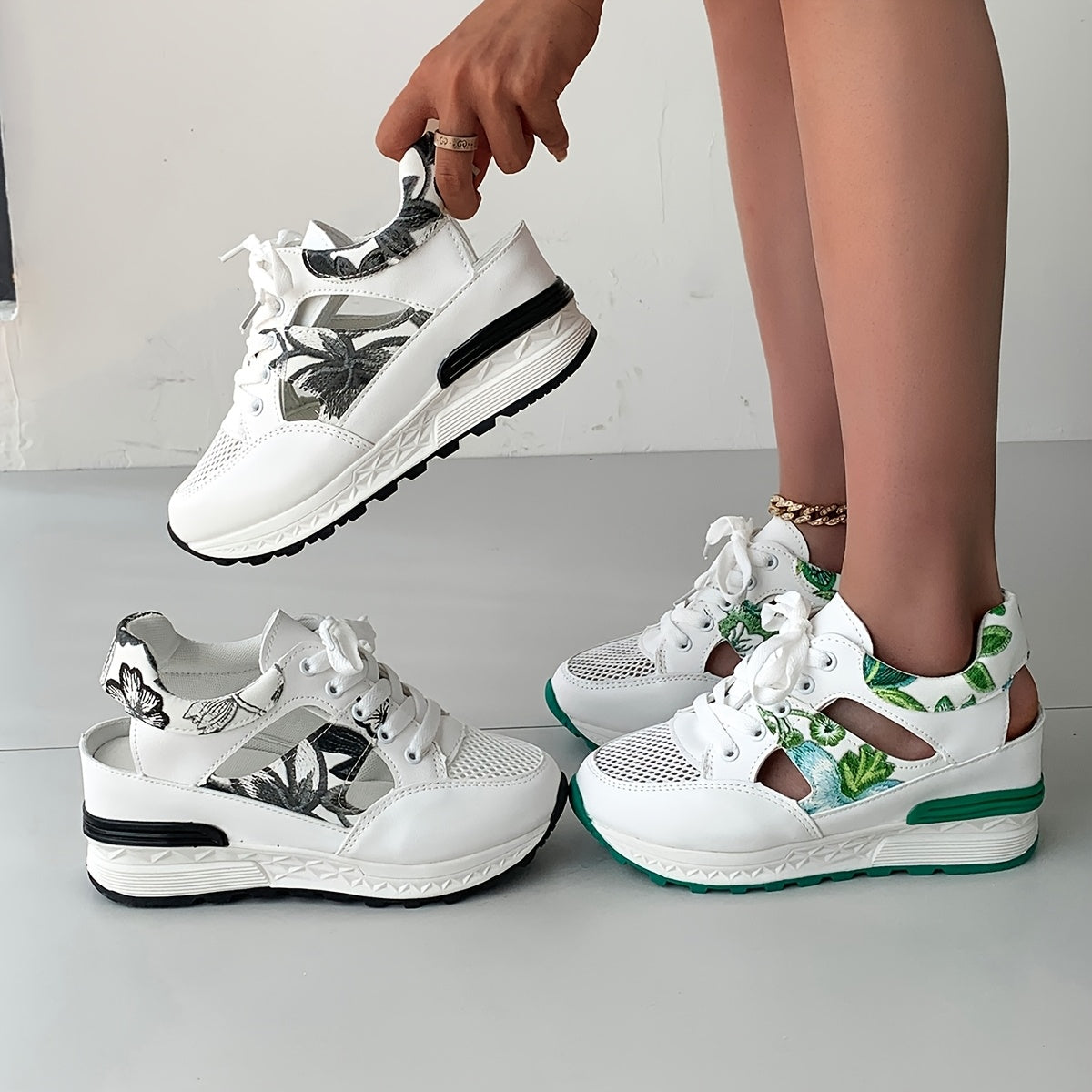 Կանացի նորաձև, ծաղկային, բազմակողմանի, առօրյա, թեթև, շնչող, ցանցկեն, սպորտային սանդալներ՝ հաստ, փափուկ ներբանով՝ հասակը մեծացնելու համար