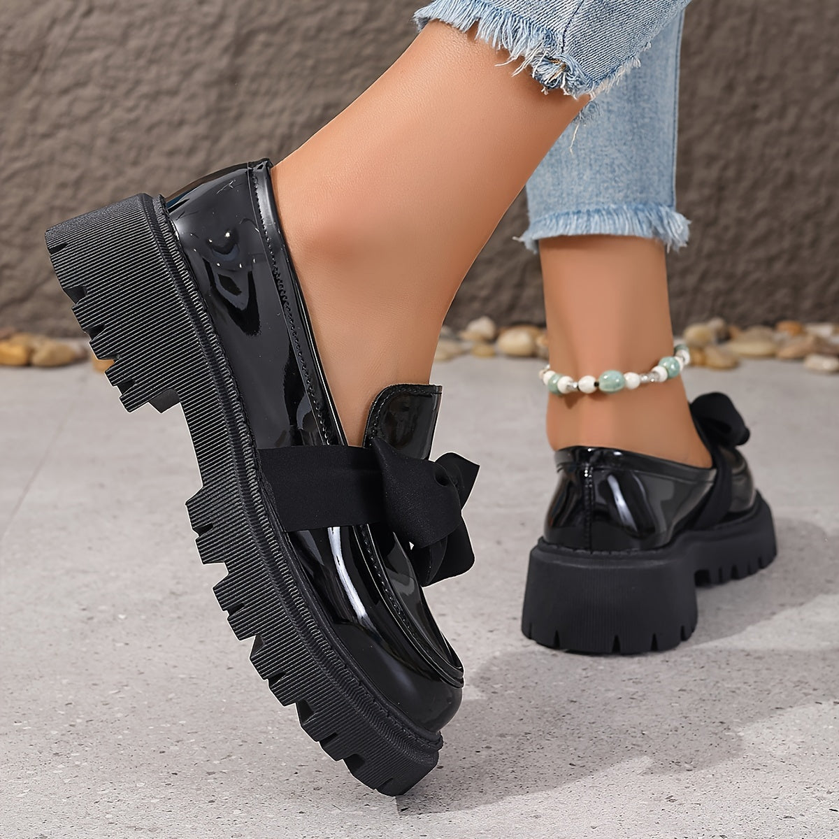 Կանացի պլատֆորմի լոֆերներ՝ աղեղնավոր շեշտադրումներով, կլոր մատների ներբանով կոշիկ, պատրաստական ոճի համազգեստ/աշխատանքային կոշիկներ