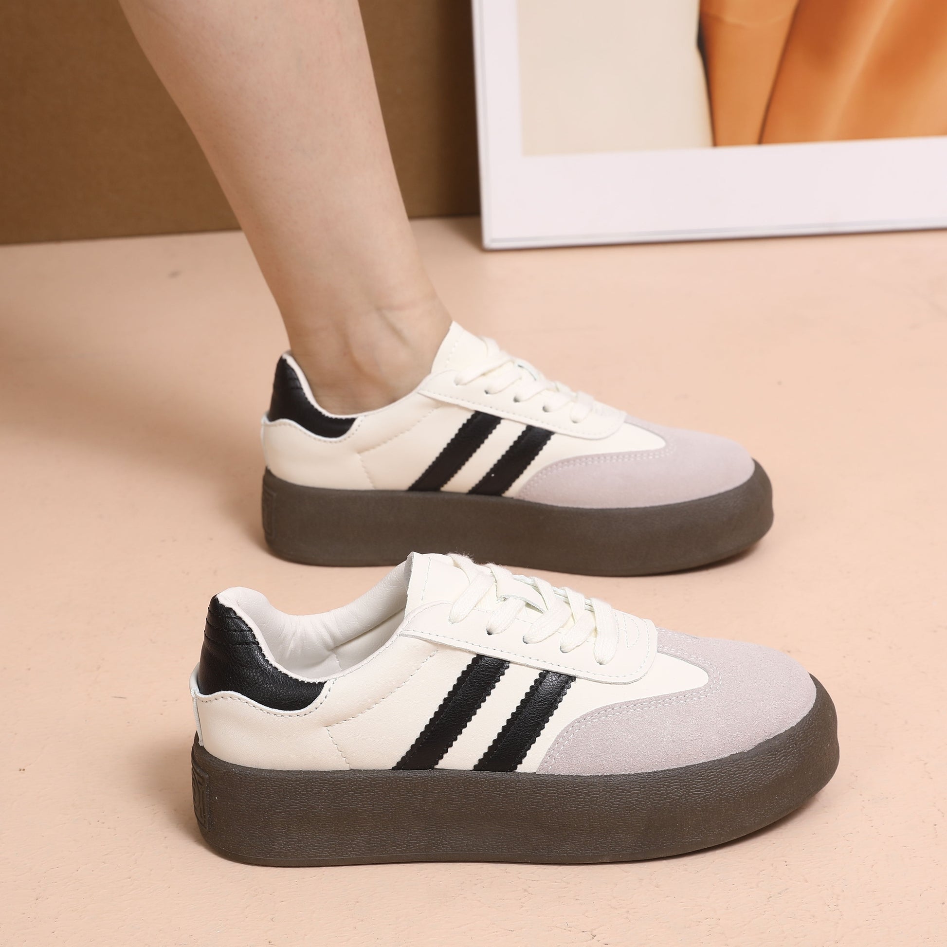 Կանացի պլատֆորմի սպորտային կոշիկներ, բարձր հասակ, արհեստական կաշի, ամենօրյա հաստ ներբան, սպորտային ժանյակավոր կոշիկներ
