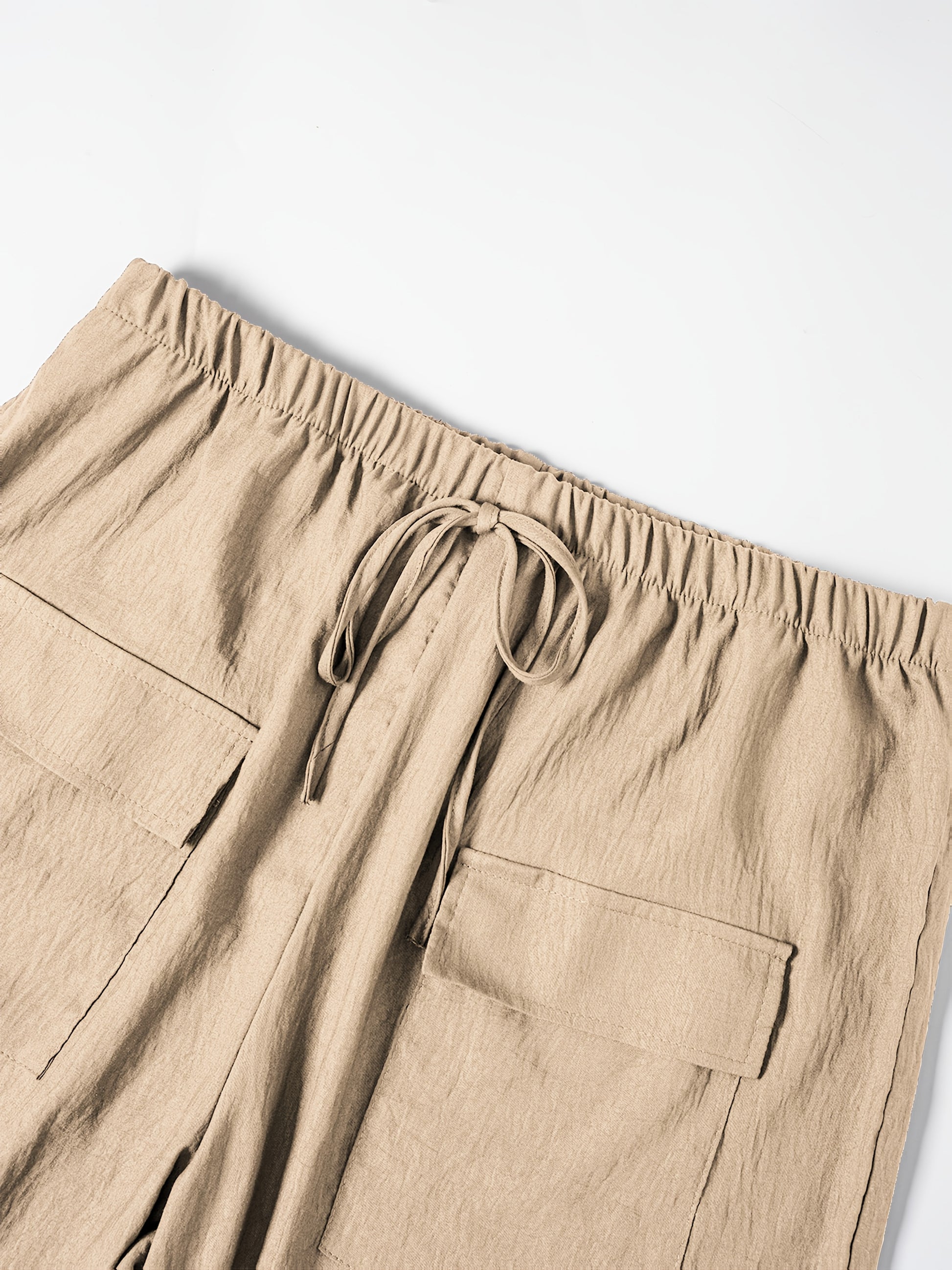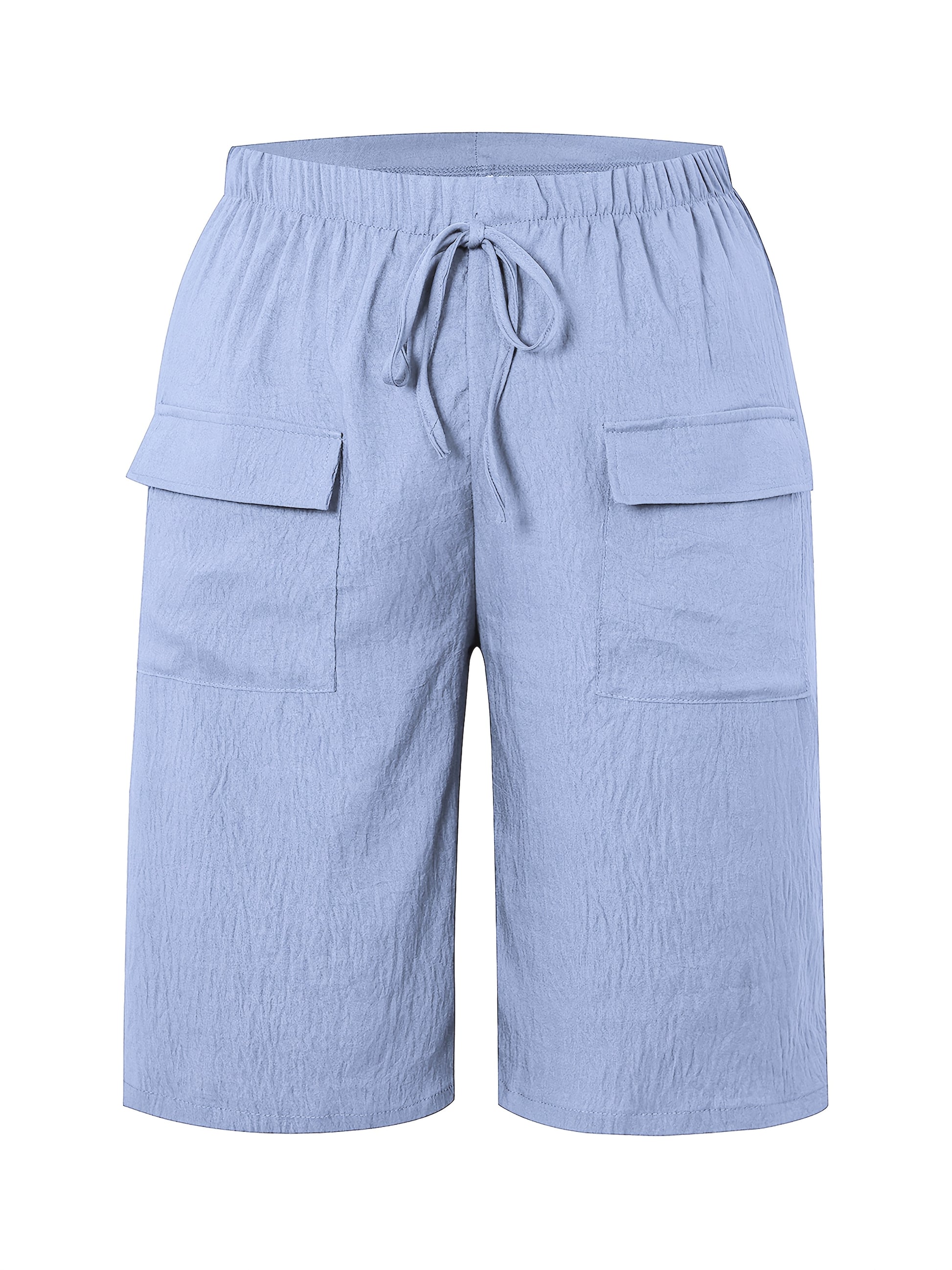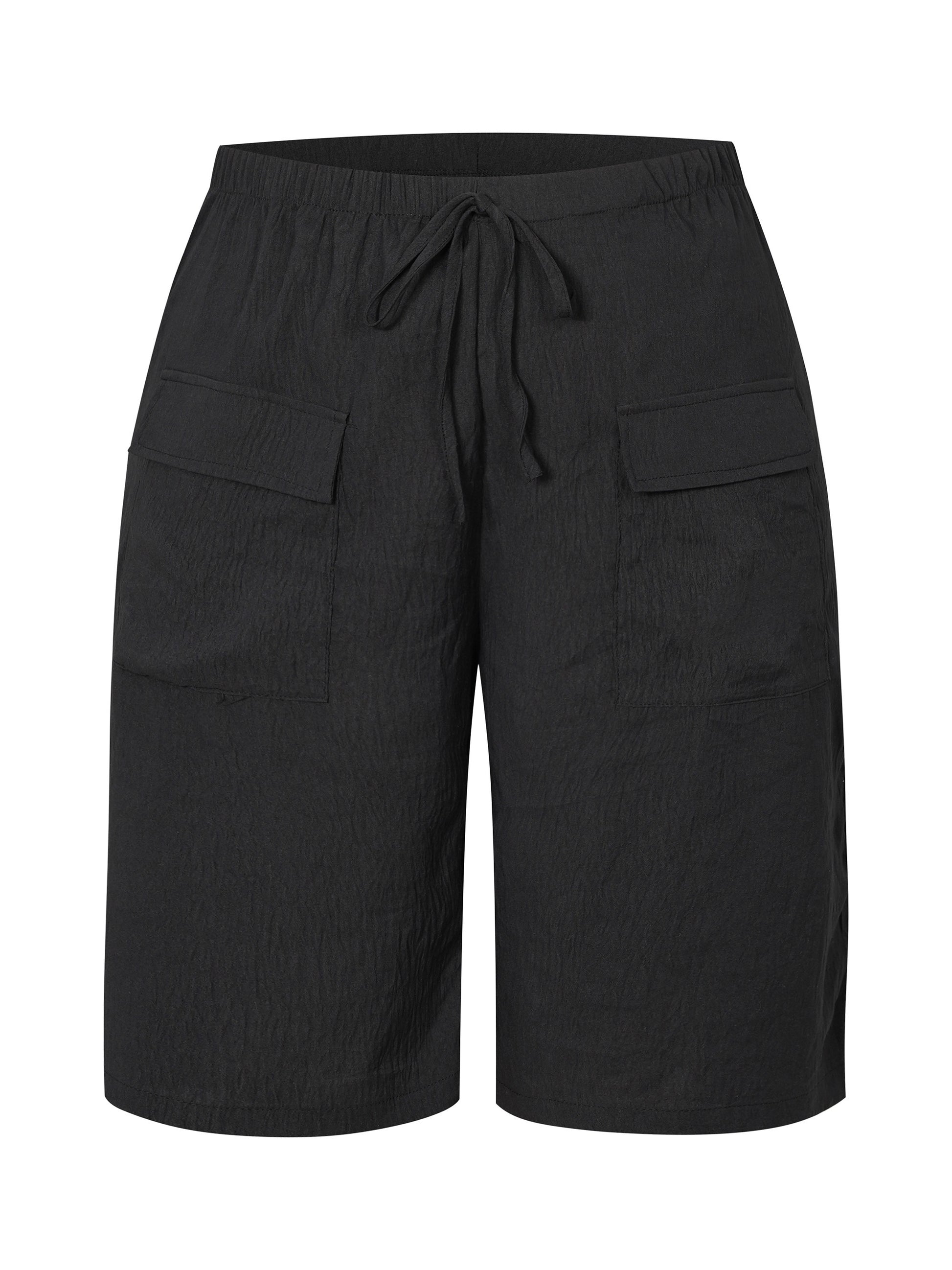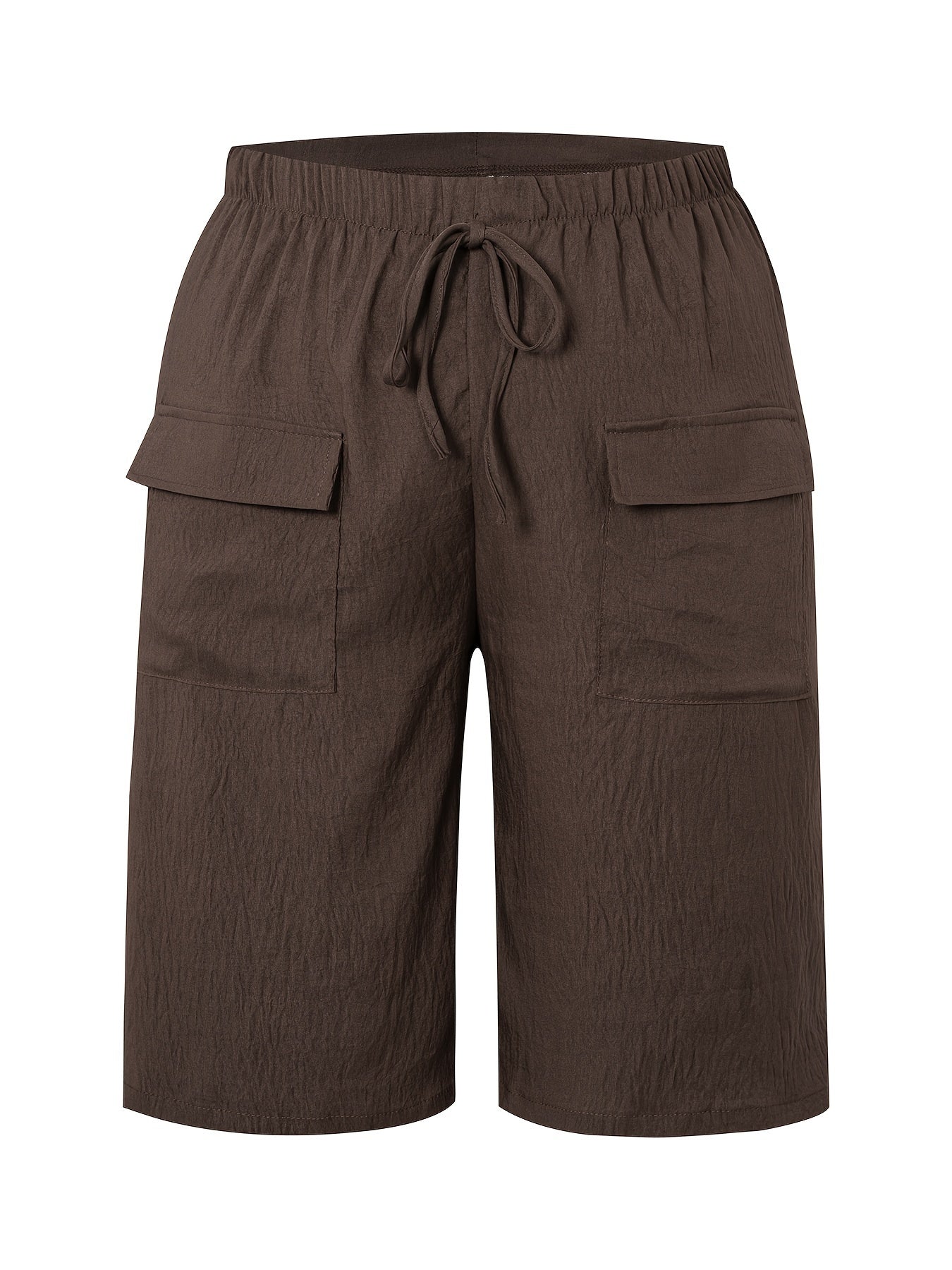 Կանացի պլյուս չափի պատահական շորտեր՝ միաձույլ գույնի, գրպաններով գոտկատեղով, չձգվող պոլիեսթեր, լվացվող մեքենայում