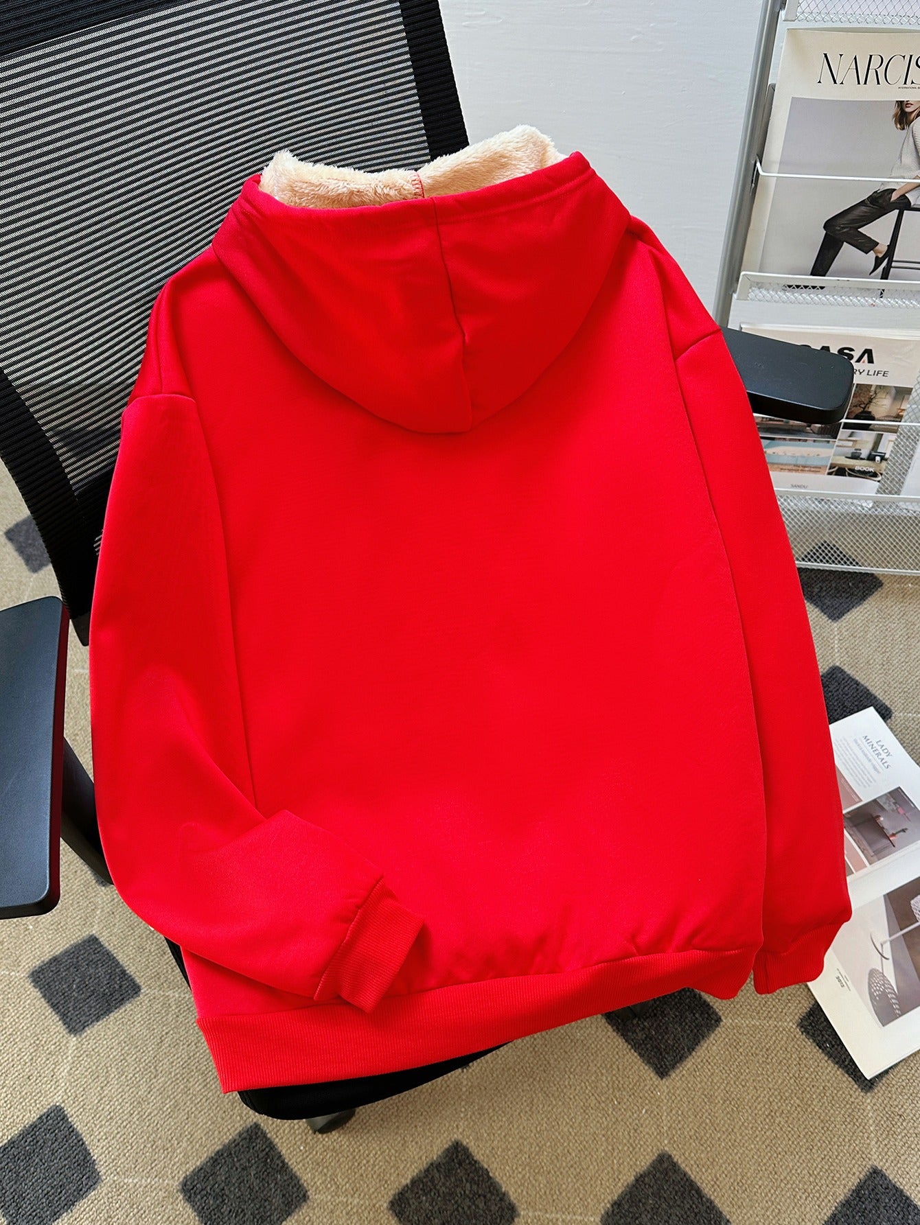 Կանացի մեծ չափսի ձմեռային տաք, գլխարկով սվիտեր՝ Շնորհավոր Սուրբ Ծնունդ և Շնորհավոր Նոր Տարի նախշերով - Հաստ բրդյա ծածկույթով մեծ չափսի սվիտեր, հարմարավետ, առօրյա սվիտեր Սուրբ Ծննդյան համար, Հելոուինի նվերներ, Սուրբ Ծննդյան սվիտեր, տոնական հագուստ,