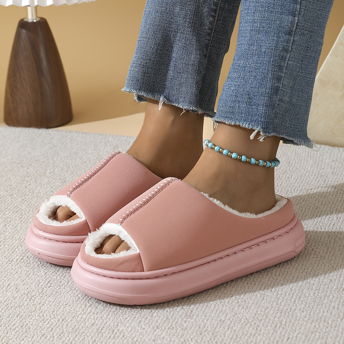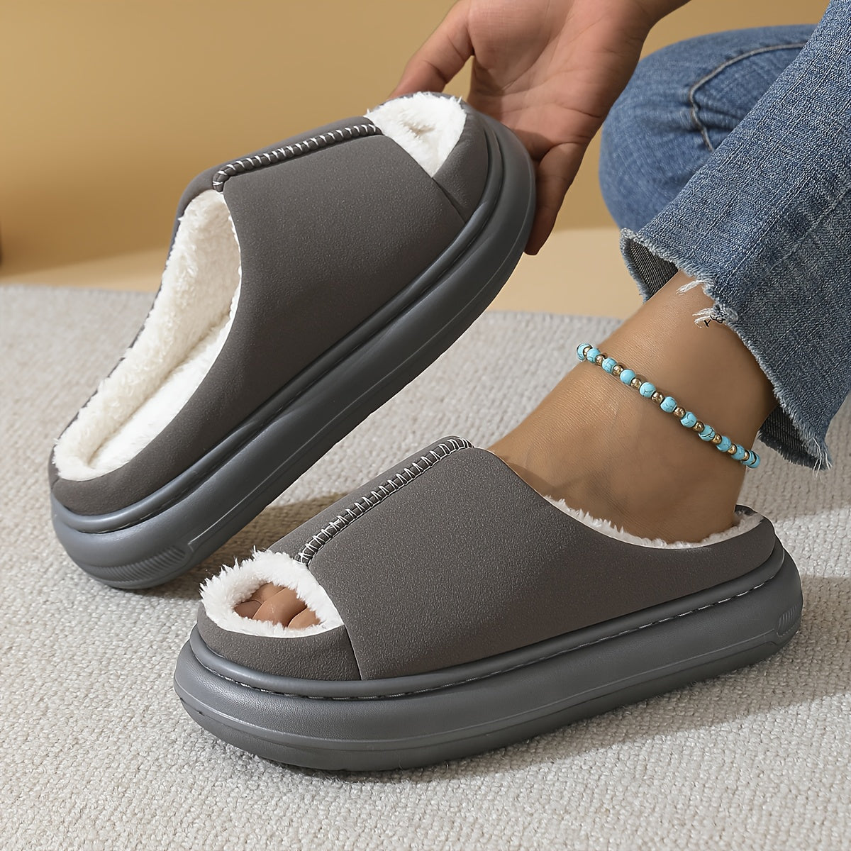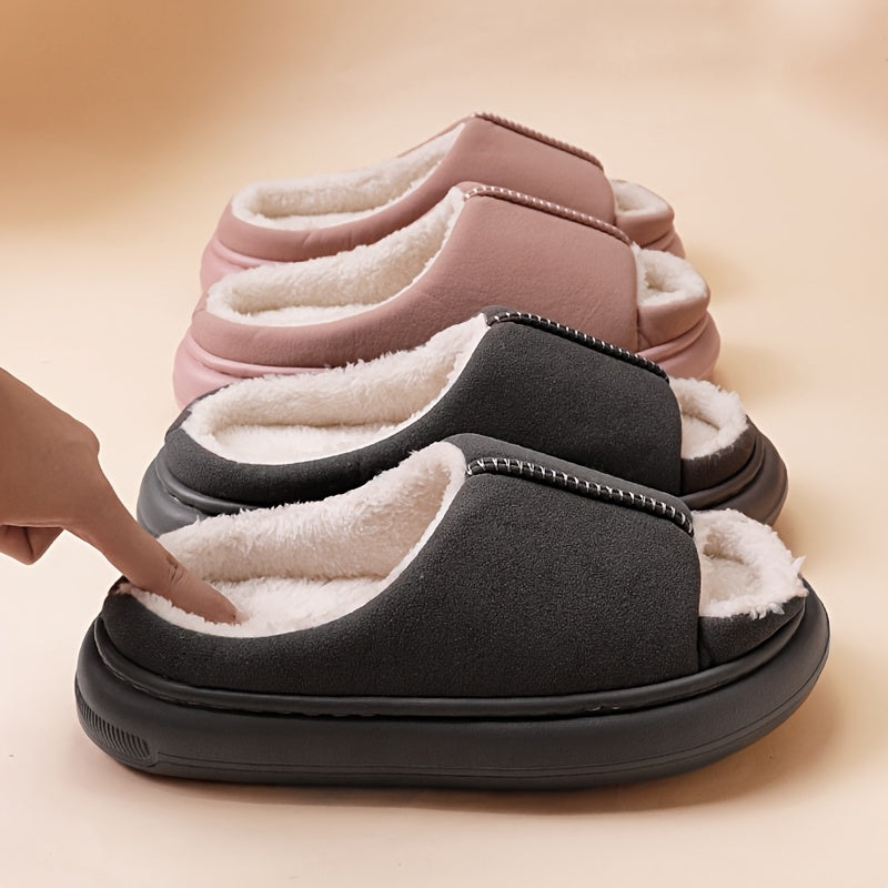 Women's Plush Slip-On House Shoes - Soft Open-Toe Indoor Slippers, Non-Slip Cushioned EVA Sole, All-Season Cozy Lounge Footwear Black/Gray/Beige/Pink/White - Elegant Home Decor Gift for Women, Simple Design, Durable Sole
