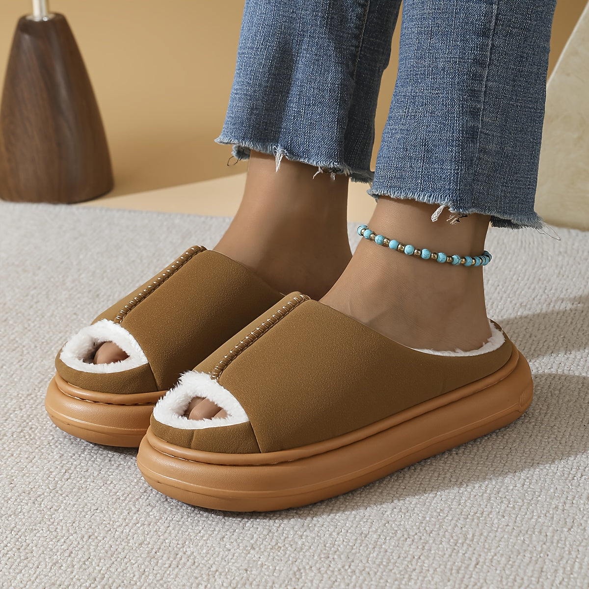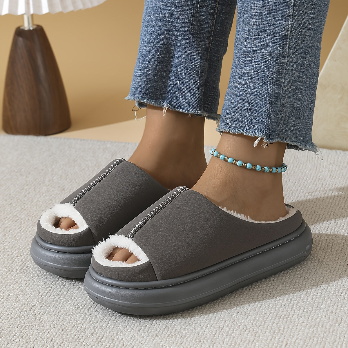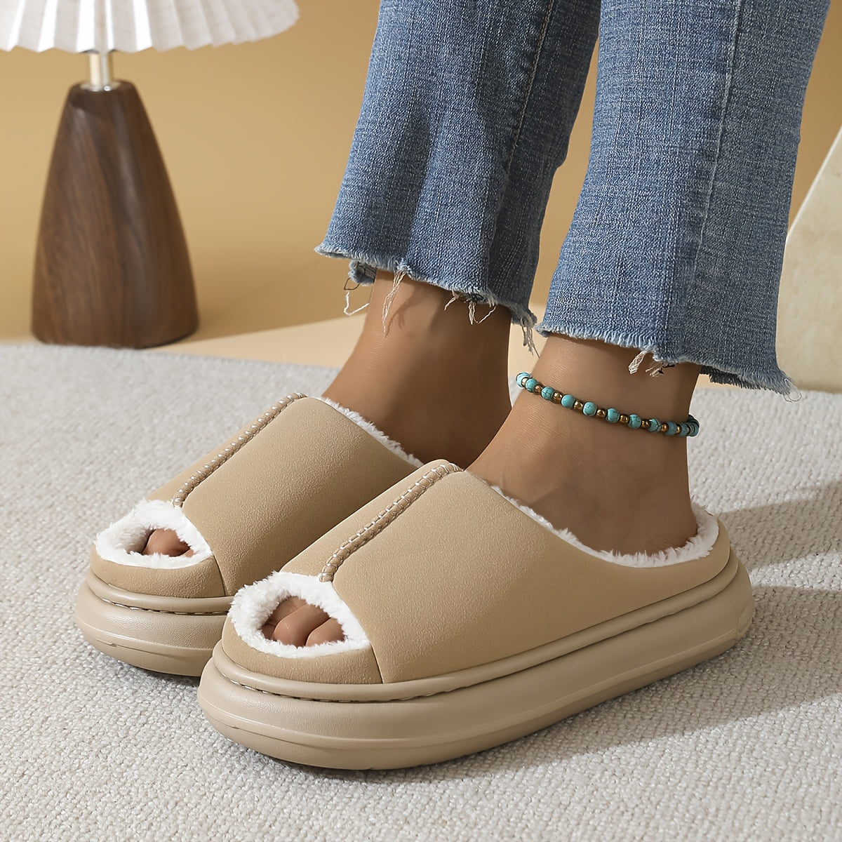 Women's Plush Slip-On House Shoes - Soft Open-Toe Indoor Slippers, Non-Slip Cushioned EVA Sole, All-Season Cozy Lounge Footwear Black/Gray/Beige/Pink/White - Elegant Home Decor Gift for Women, Simple Design, Durable Sole