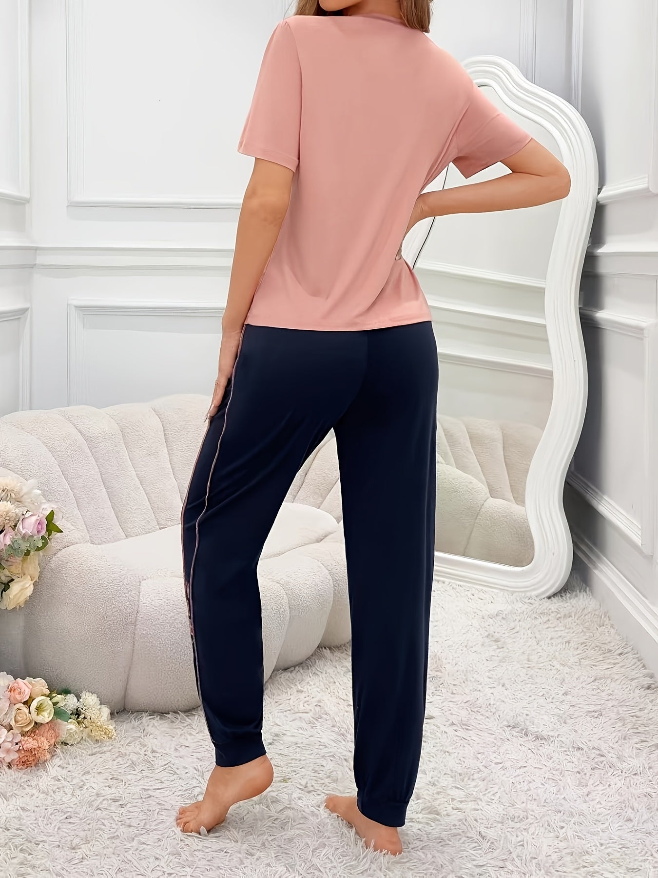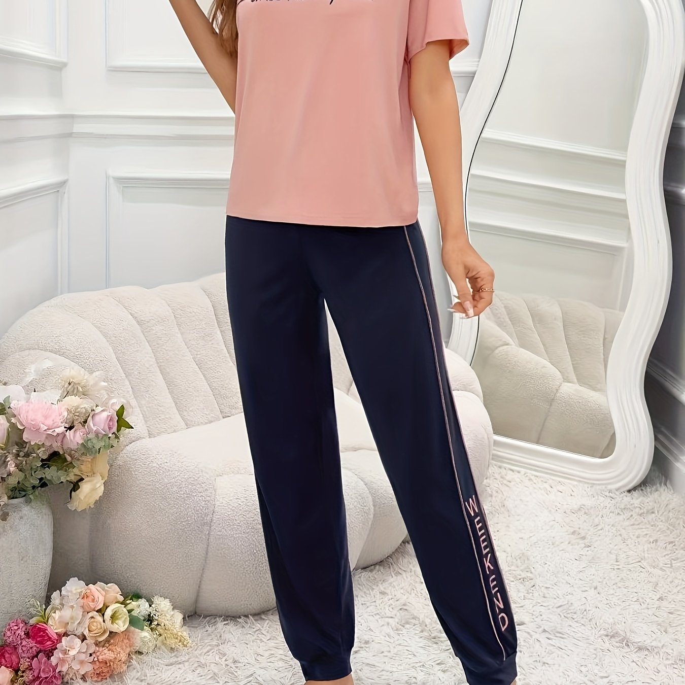 Կանացի կարճ թևքերով, կլոր դեկոլտեով, տպագիր տառերով վերնաշապիկ, գունավոր երկար տաբատ, գիշերանոց և տնային հագուստ։