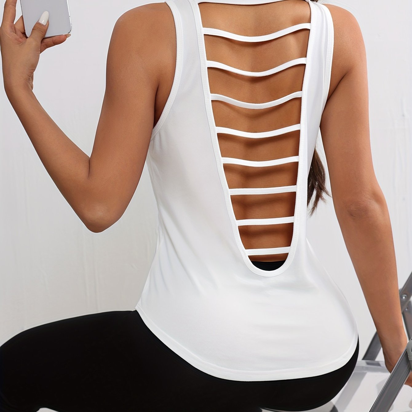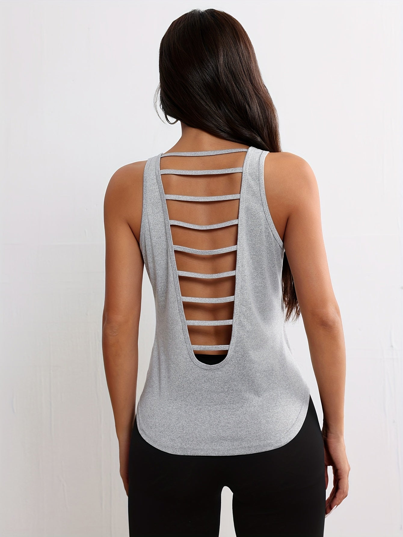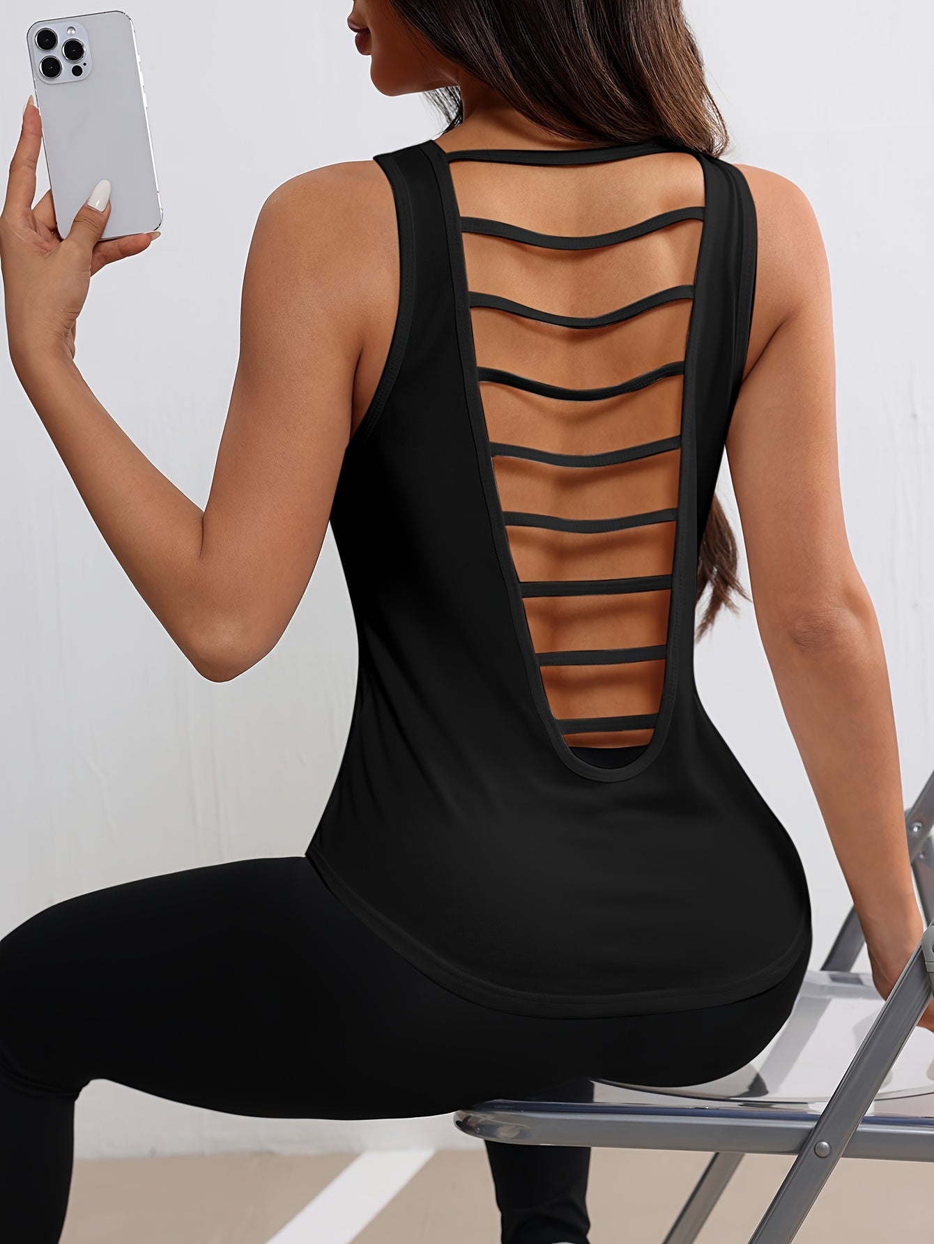 Կանացի անթև սպորտային տանկի վերնաշապիկ՝ ձգվող և շնչող պոլիեսթեր-էլաստանի խառնուրդ, կլոր պարանոց, առանց մեջքի ձևավորում ամենօրյա և սպորտային հագուստի համար, լվացվող մեքենայով