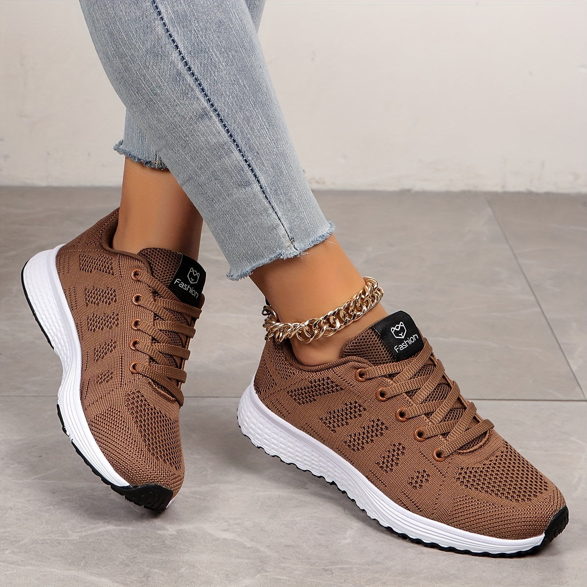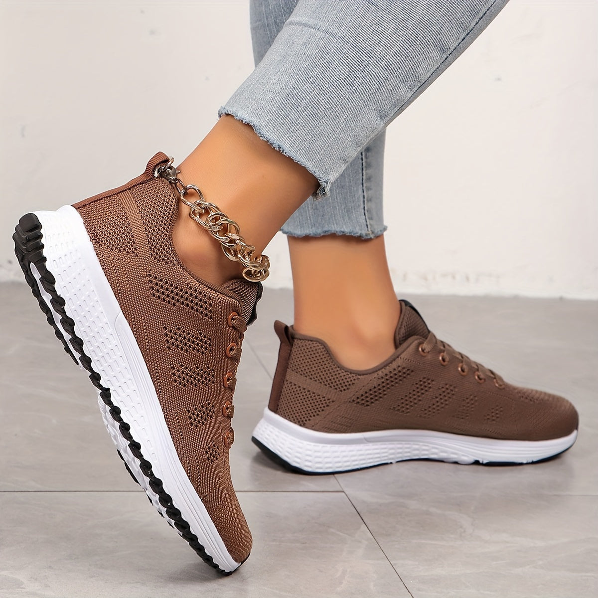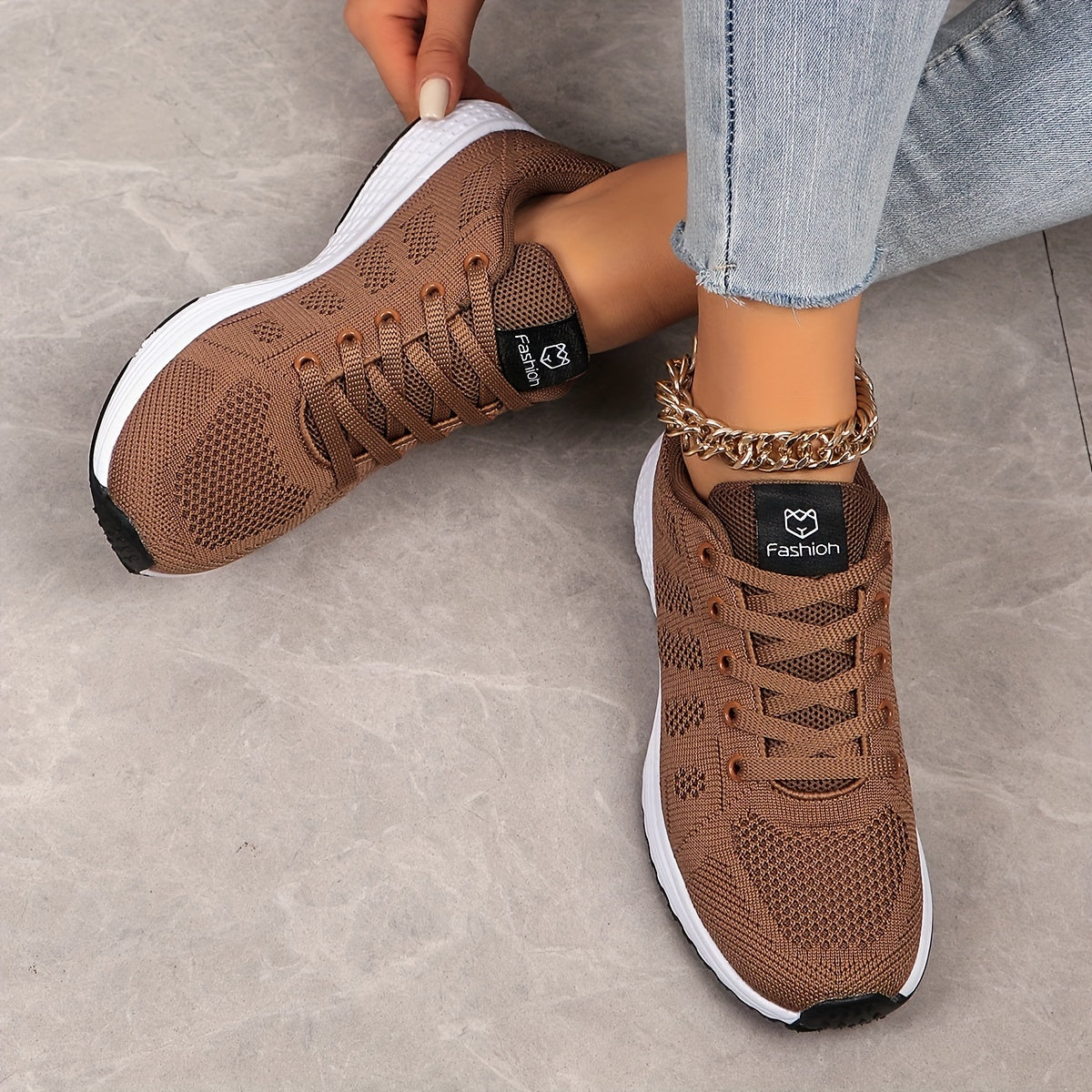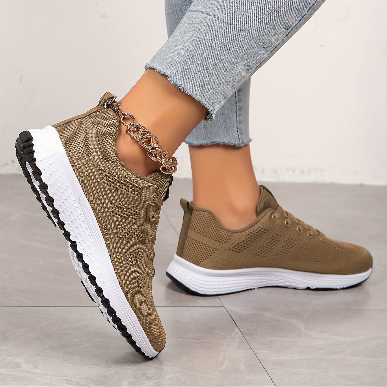 Կանացի միաձույլ տրիկոտաժե սպորտային կոշիկներ, ժանյակավոր փափուկ ներբան հարթակի ամենօրյա կոշիկներ, ցածր վերևից շնչող կոշիկներ