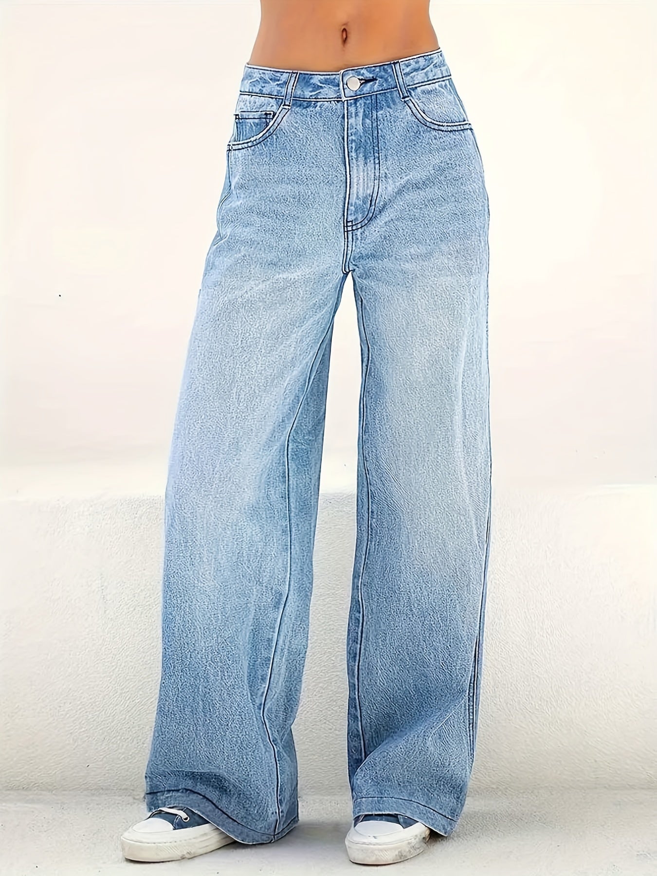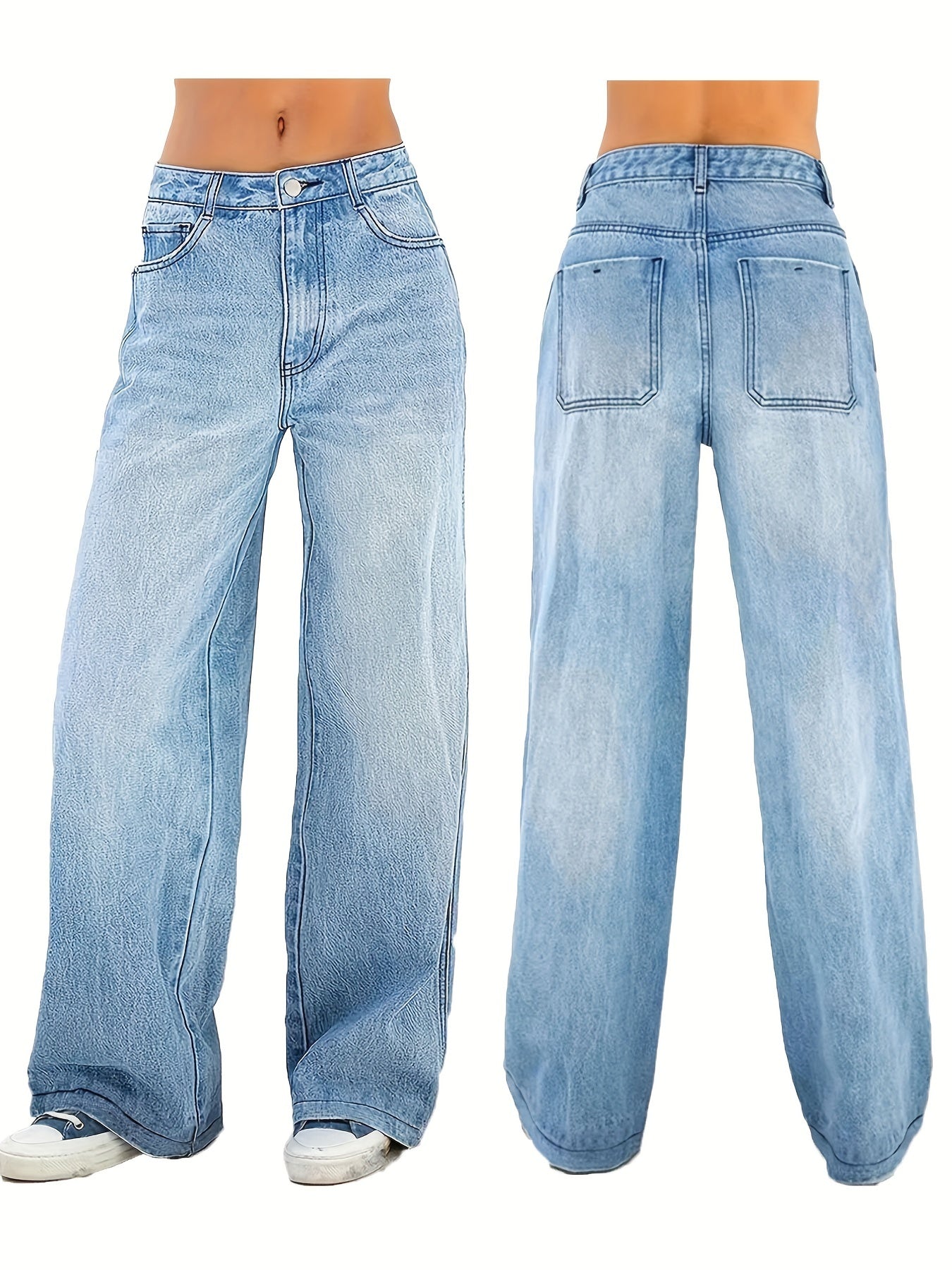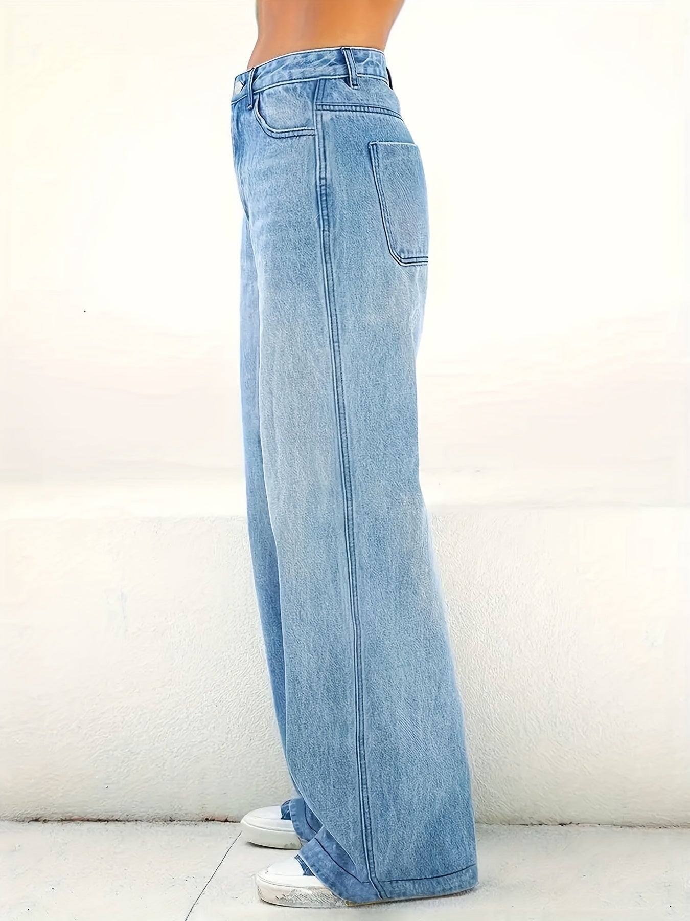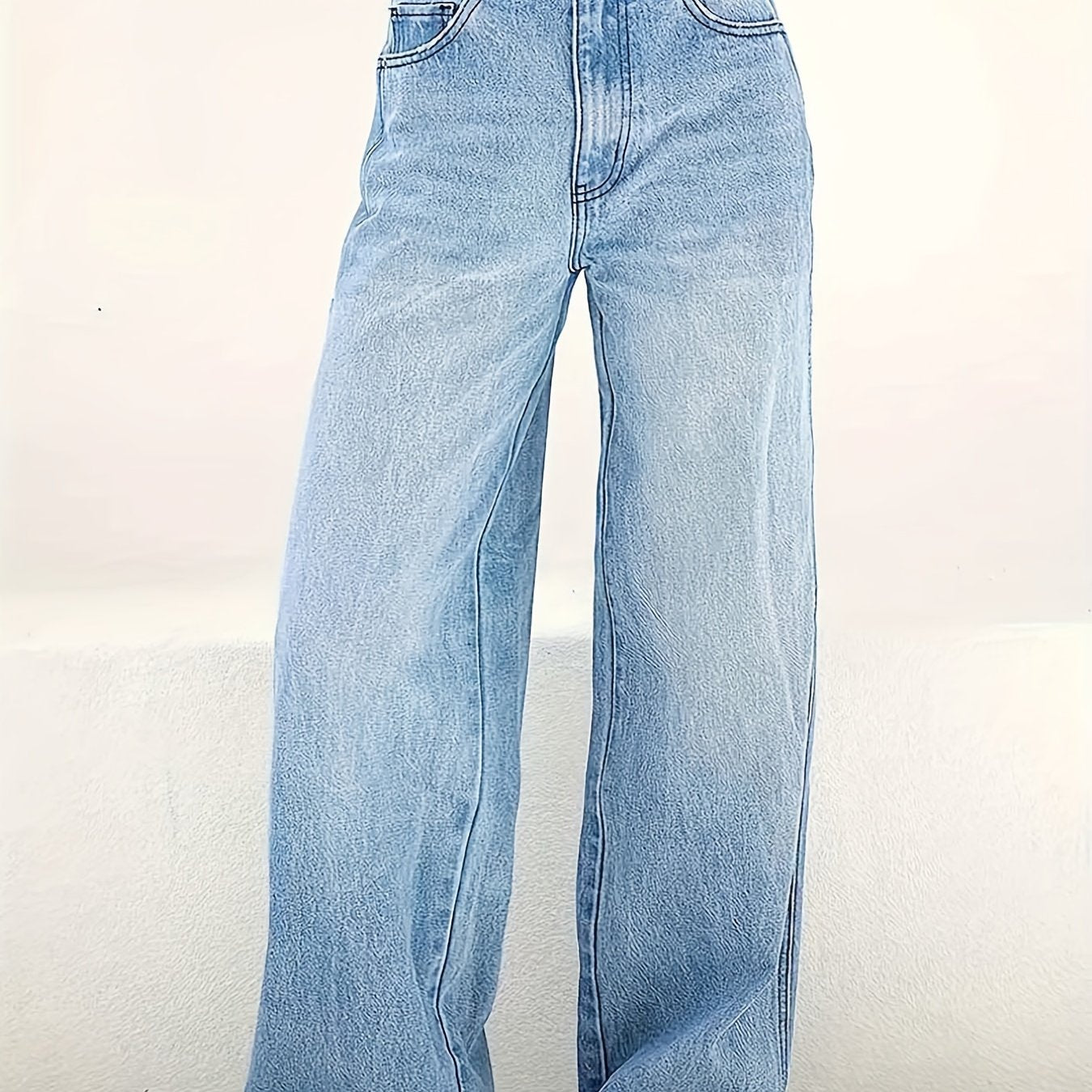 Կանացի ձգվող ջինսե բարձր գոտկատեղով ուղիղ ջինսեր, նորաձև բազմագրպանով լվացված կապույտ, ազատ հարմարավետություն, հանգստյան օրերի ամենօրյա հագուստ բոլոր սեզոնների համար