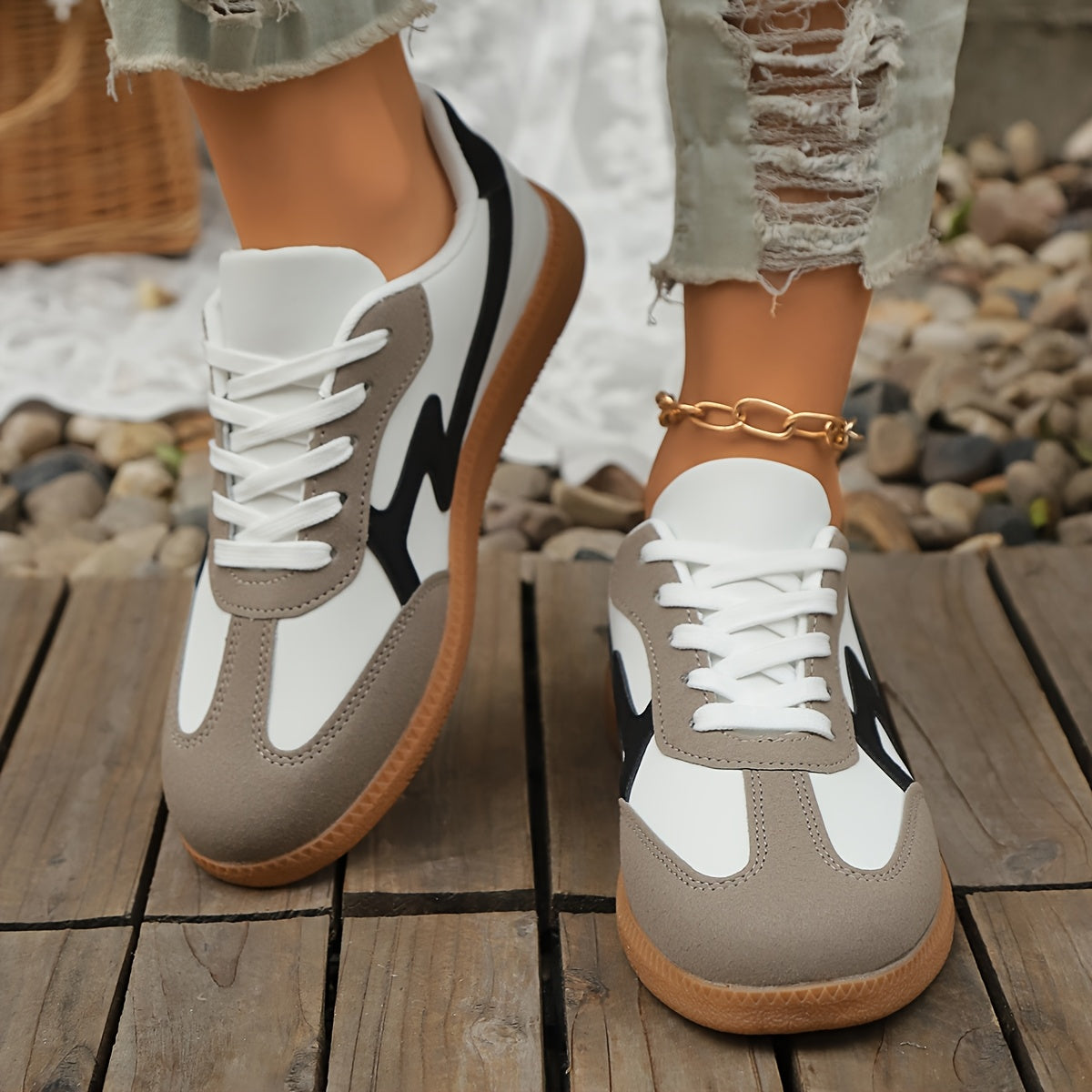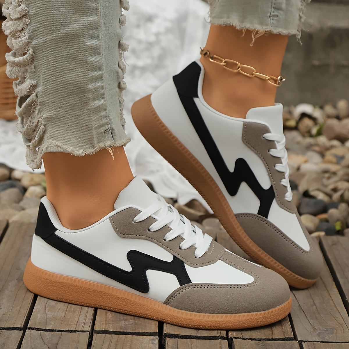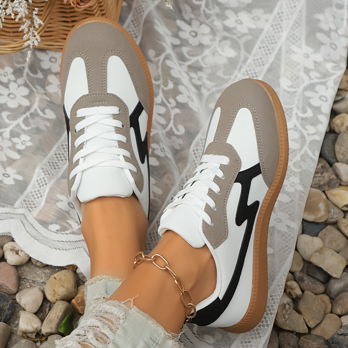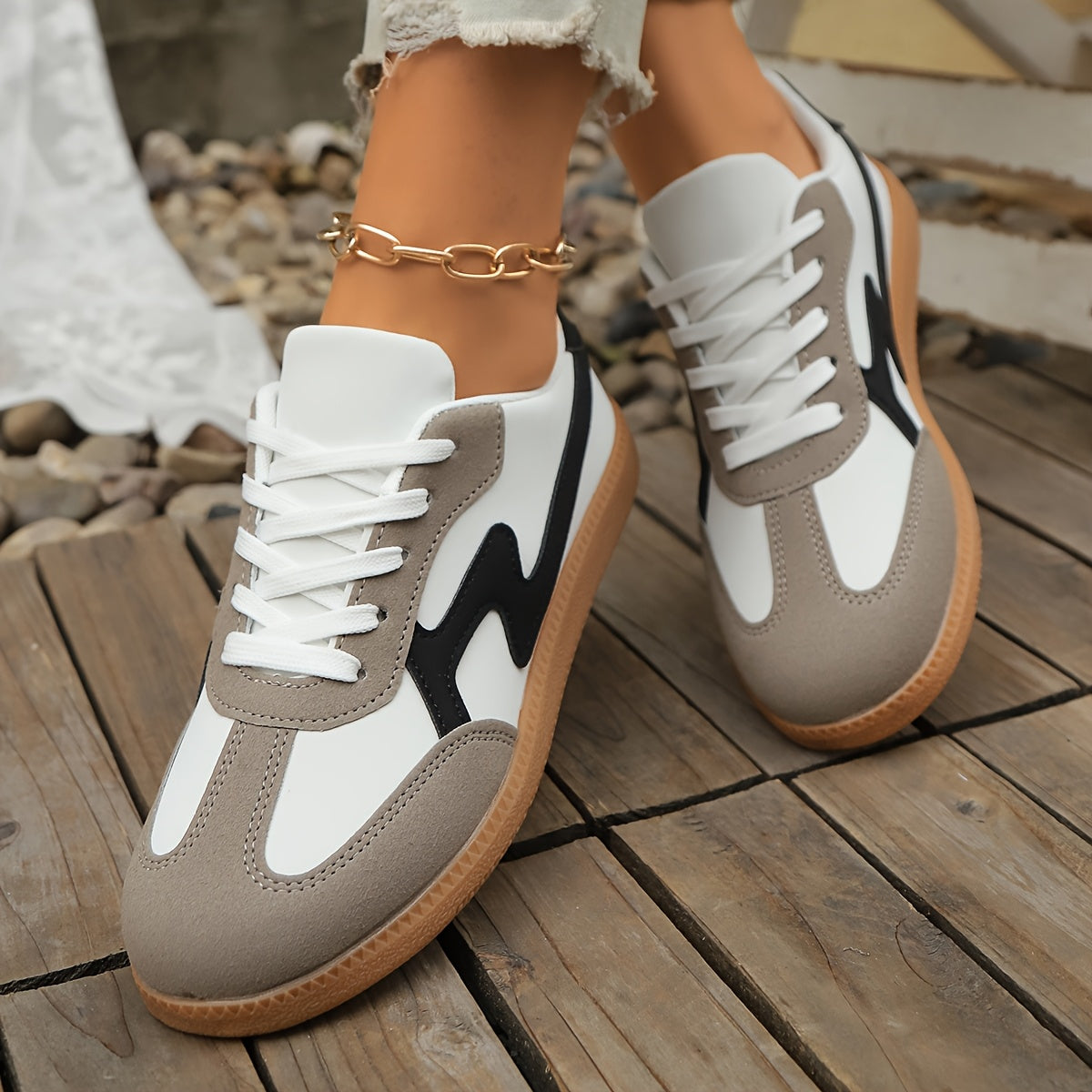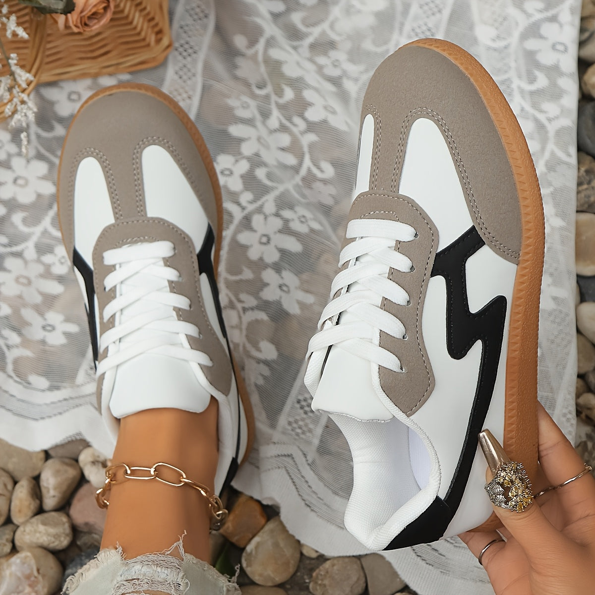 Կանացի գծավոր միջին վերևի ժանյակավոր սպորտային կոշիկներ՝ շնչող գործվածքից վերև, ցանցային ներքև, TPR ներբան, պարզ ծայր, բոլոր սեզոնային հարմարավետ սպորտային կոշիկներ