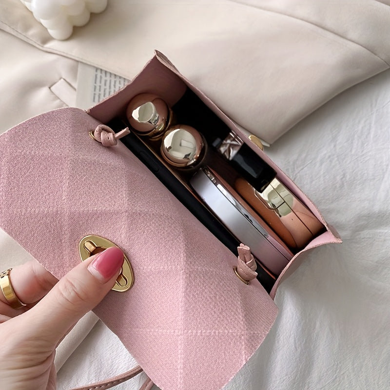 Կանացի ոճային, խաչաձև պայուսակ՝ նրբագեղ, միագույն ուսի պայուսակ՝ պտտվող փակման դիզայնով, կարգավորվող ժապավենով՝ ոսկեգույն զարդարանքներով, հասանելի է նախշերով և գալիս է սև, կարմիր, վարդագույն, շագանակագույն գույներով։