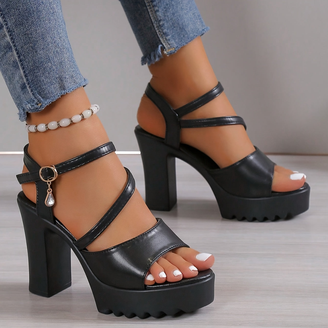 Կանացի ամառային նորաձև հաստ կրունկով սանդալներ - սպիտակ բաց քթով, ճարմանդային ժապավենով, հարմարավետ պոլիուրեթանային ներբան, ոճային բարձր կրունկով սանդալներ առօրյա հագուստի համար, հաստ կրունկով սանդալներ