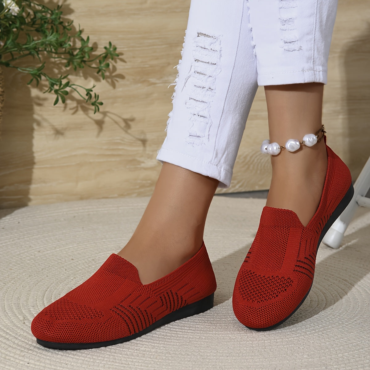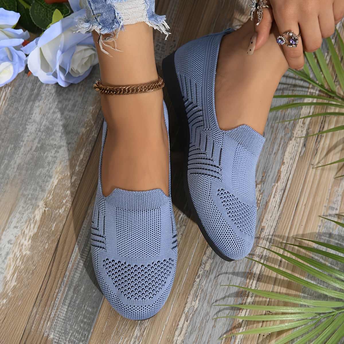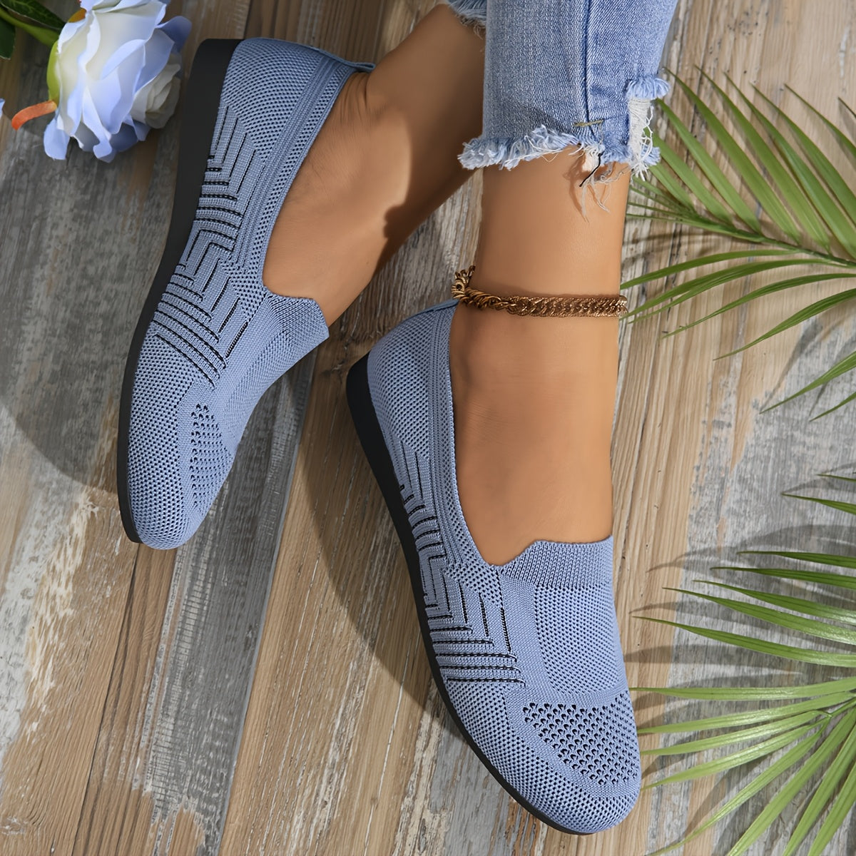 Կանացի ամառային տրիկոտաժե հարթ կոշիկներ, սովորական նորաձև շնչառական լոֆերներ, բոլոր սեզոնային փափուկ գործվածքից վերնամաս՝ պլաստիկ ներբանով և արհեստական ներբանով, մատների պարզ ձևավորում