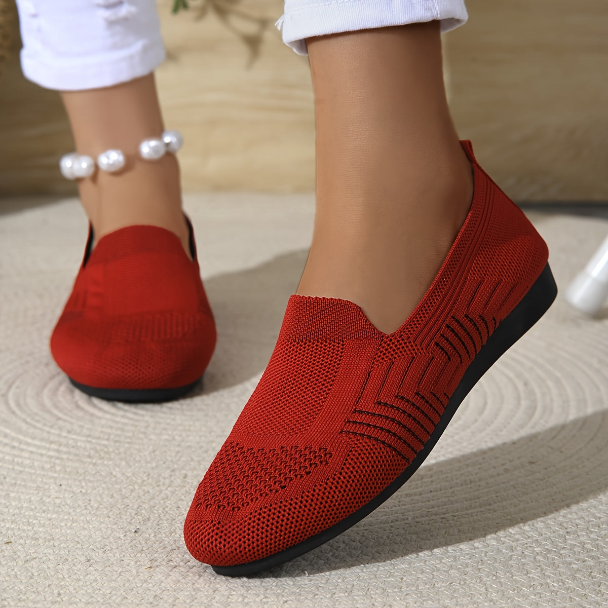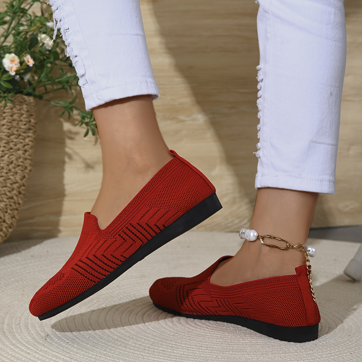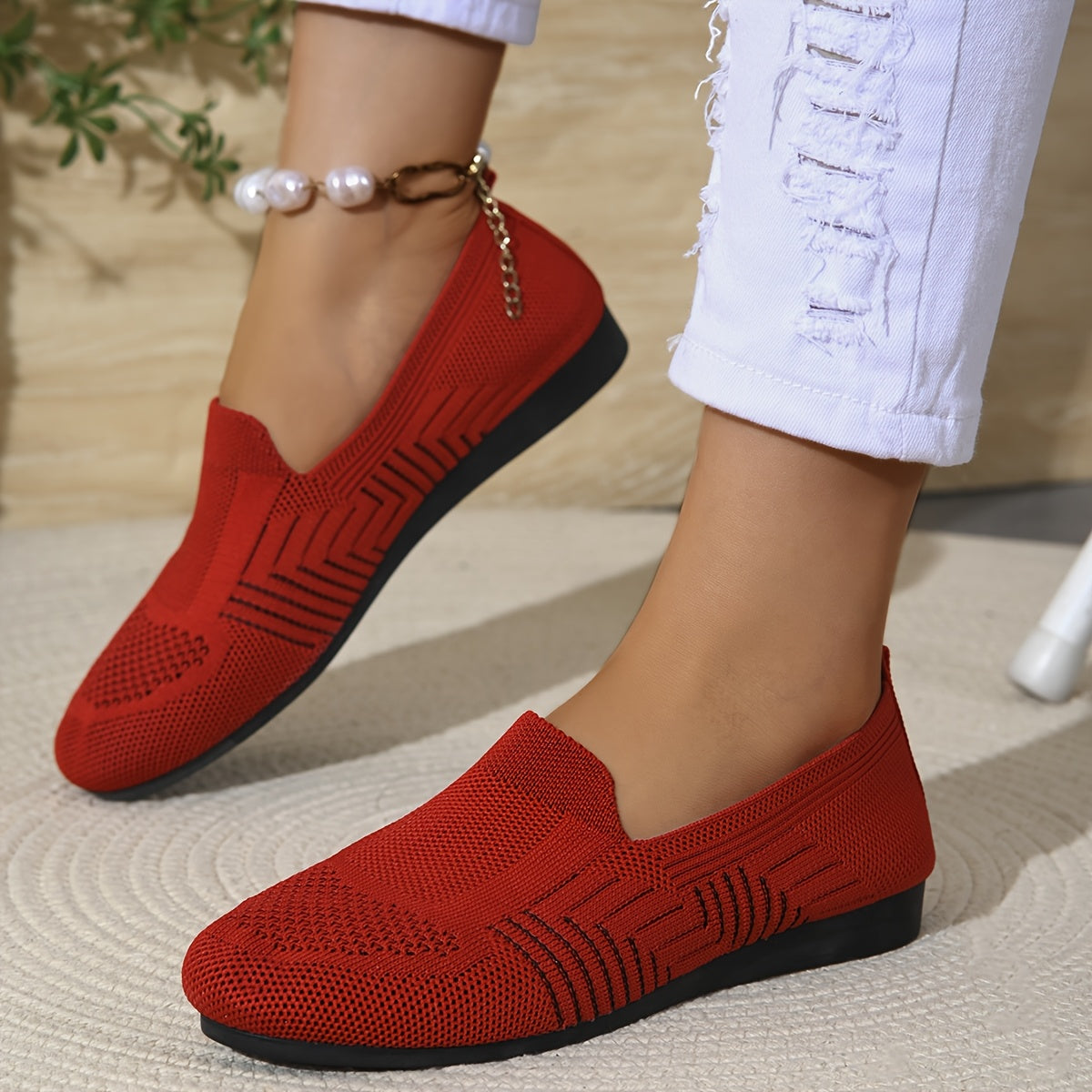 Կանացի ամառային տրիկոտաժե հարթ կոշիկներ, սովորական նորաձև շնչառական լոֆերներ, բոլոր սեզոնային փափուկ գործվածքից վերնամաս՝ պլաստիկ ներբանով և արհեստական ներբանով, մատների պարզ ձևավորում