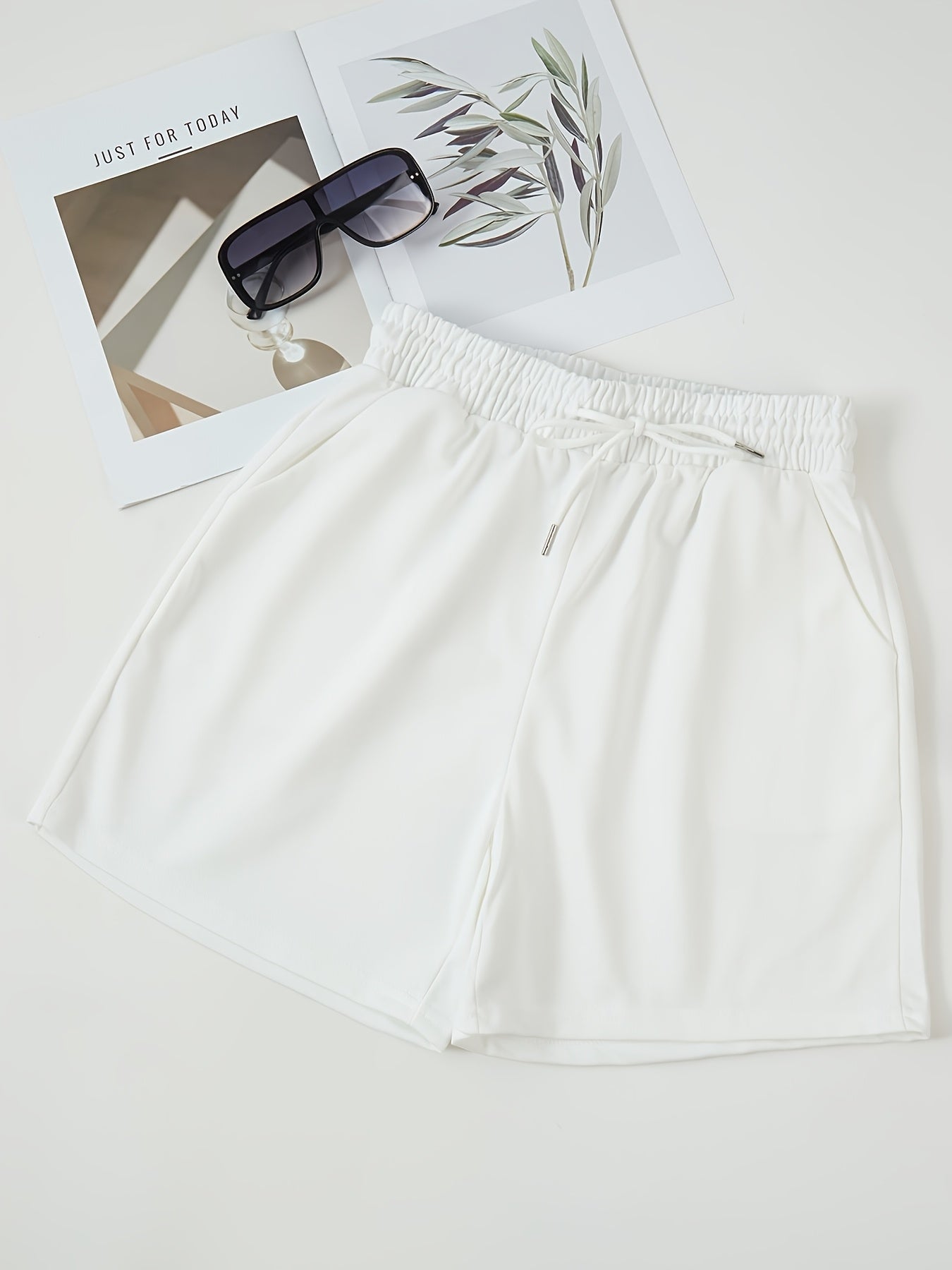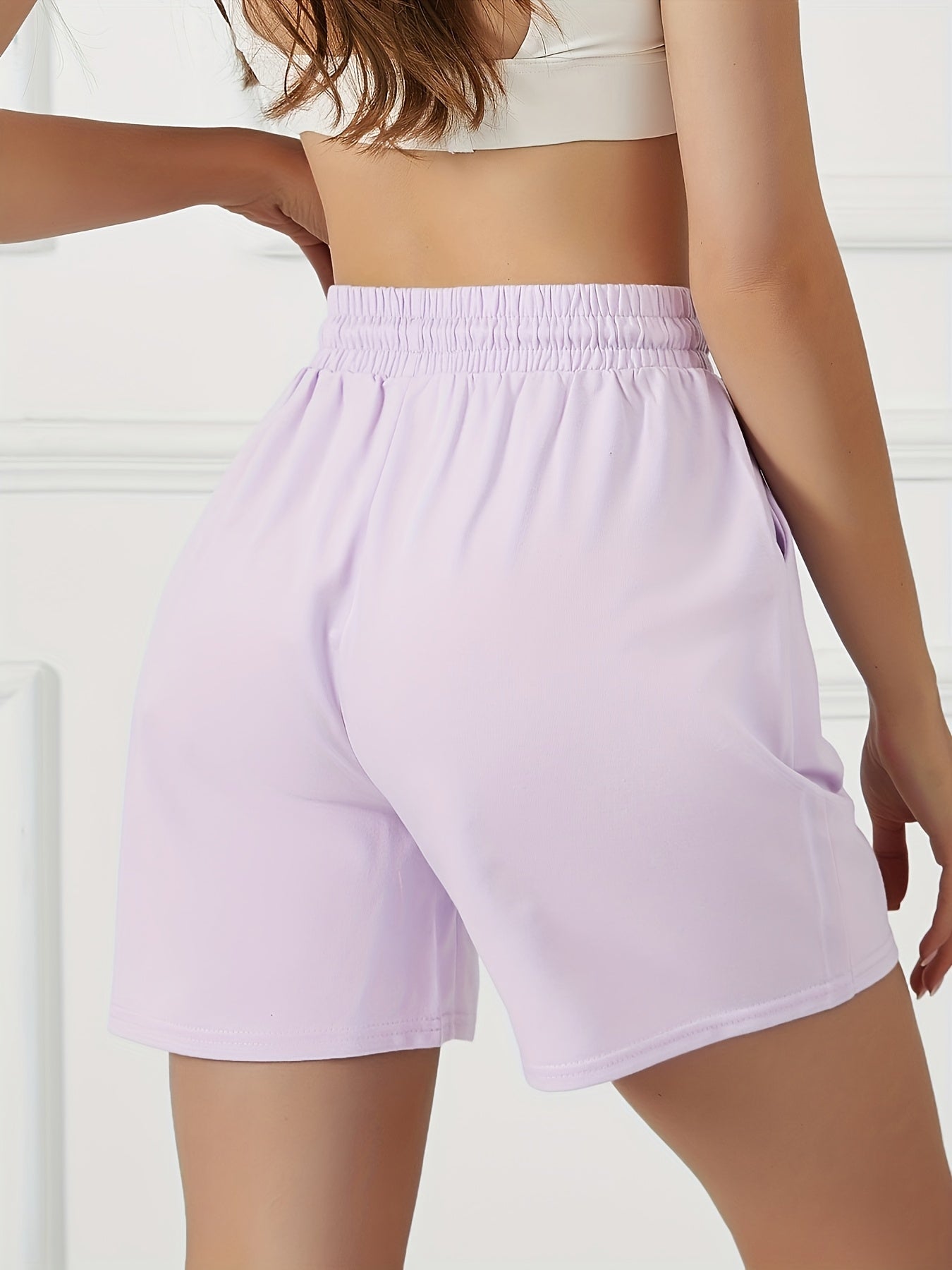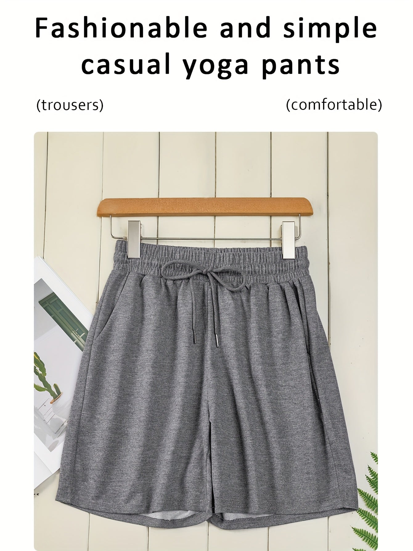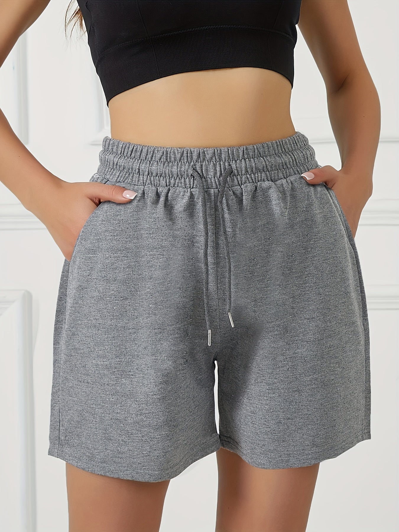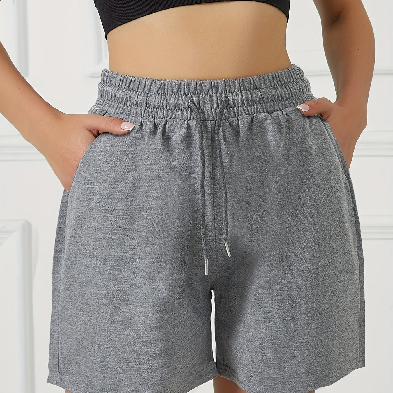 Կանացի ամառային թեթև շորտեր երկակի գրպաններով՝ միաձույլ գույնի սև, առաձգական գոտկատեղով, սովորական վազքի և յոգայի մինչև ծնկների երկարությամբ սպորտային շորտեր