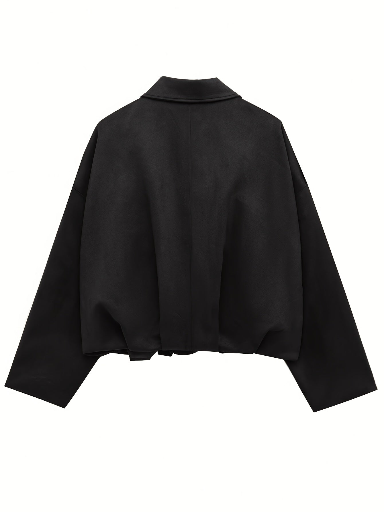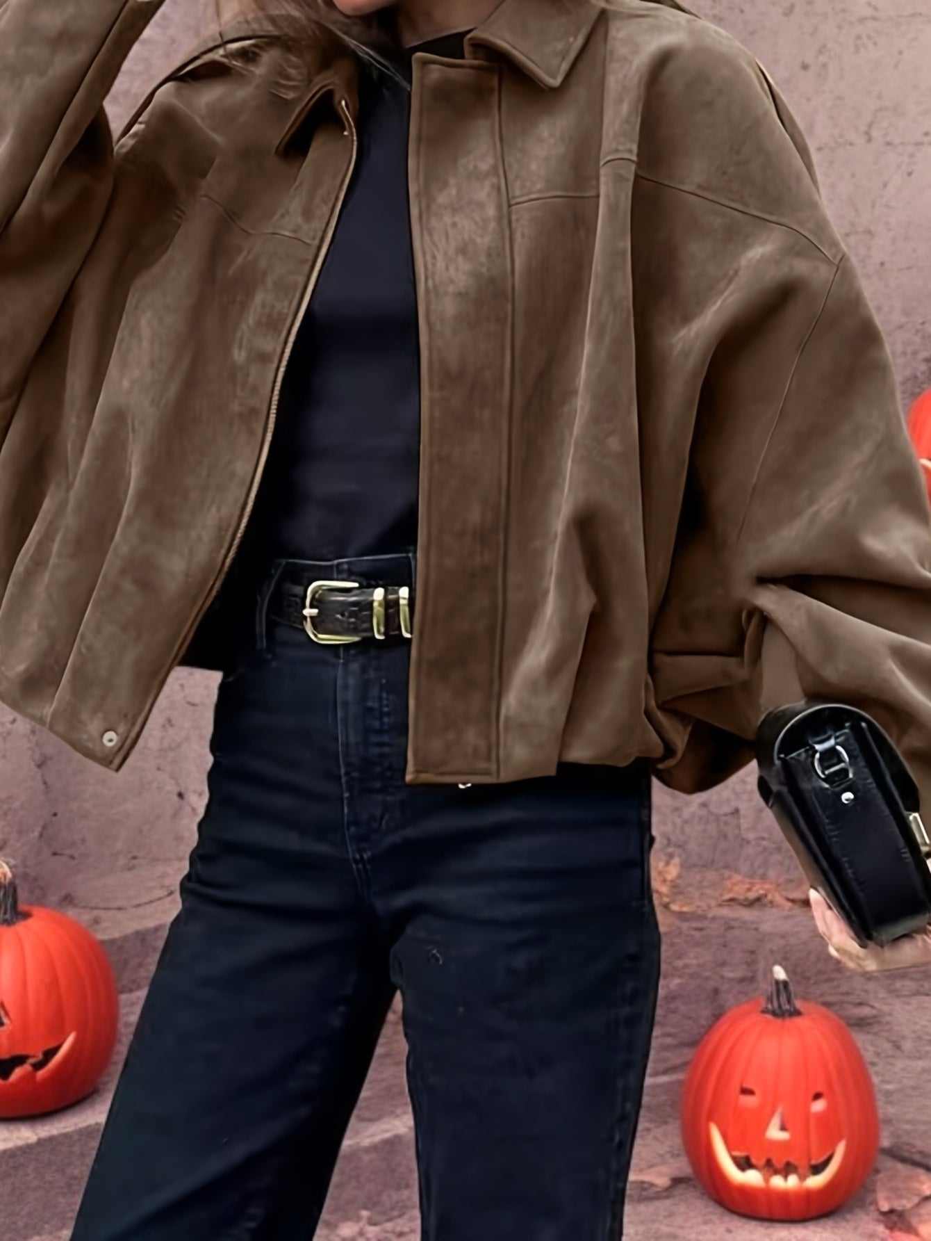 Կանացի վինտաժային բոմբեր բաճկոն - ազատ չափի երկար թևքով, կայծակաճարմանդով և իջեցված ուսերով, շագանակագույն առօրյա վերնազգեստ աշուն/ձմեռ համար, չձգվող գործվածք, իդեալական է առօրյա հագուստի համար, աշուն-ձմեռ բաճկոն | Վինտաժային բոմբեր ոճ | Zipp