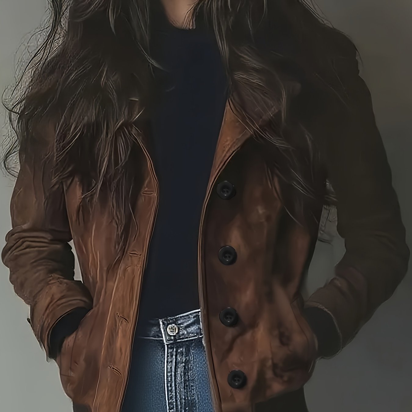 Կանացի վինտաժային ոճով արհեստական մորթուց բաճկոն - երկար թևքերով, կոճակներով, շագանակագույն, աշնանային և ձմեռային առօրյա ոճով, ձմեռային առօրյա հագուստ | Վինտաժային բաճկոն | կոճակներով բաճկոն