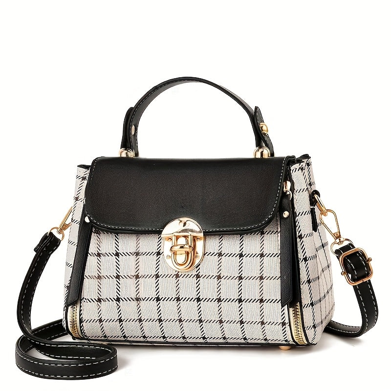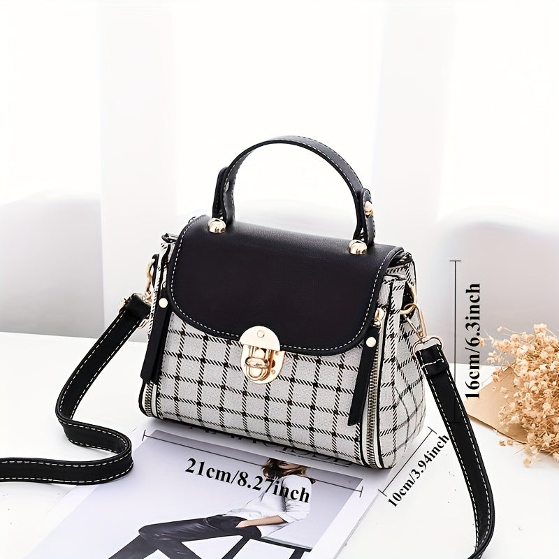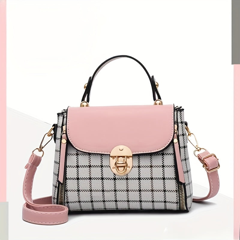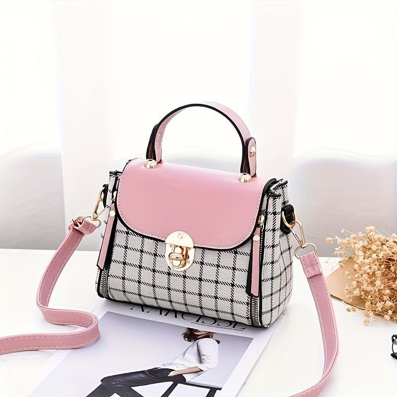 Women'S Vintage Plaid Crossbody Bag with Detachable Shoulder Strap, Zipper Closure, Polyester Lining & Edge Paint - Pink & Black Checkered Design, Perfect for Teens & Women, Ideal Gift for Birthdays, Anniversaries, Valentine'