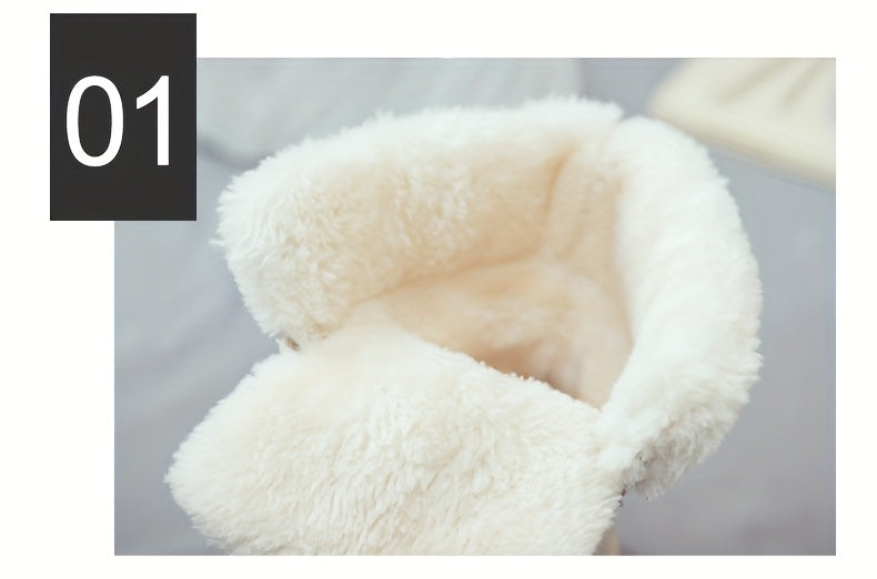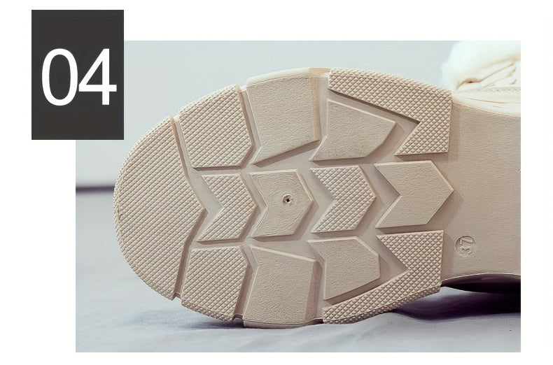 Women'S Winter Boots - Thick Platform Sole for Height & Traction, Lace-Up Mid-Calf Boots with PU Synthetic Cover Upper, Non-Slip PVC Outsole - Beige/White Cold Weather Shoes for Everyday, Formal, Party - Easy-Clean & Durable