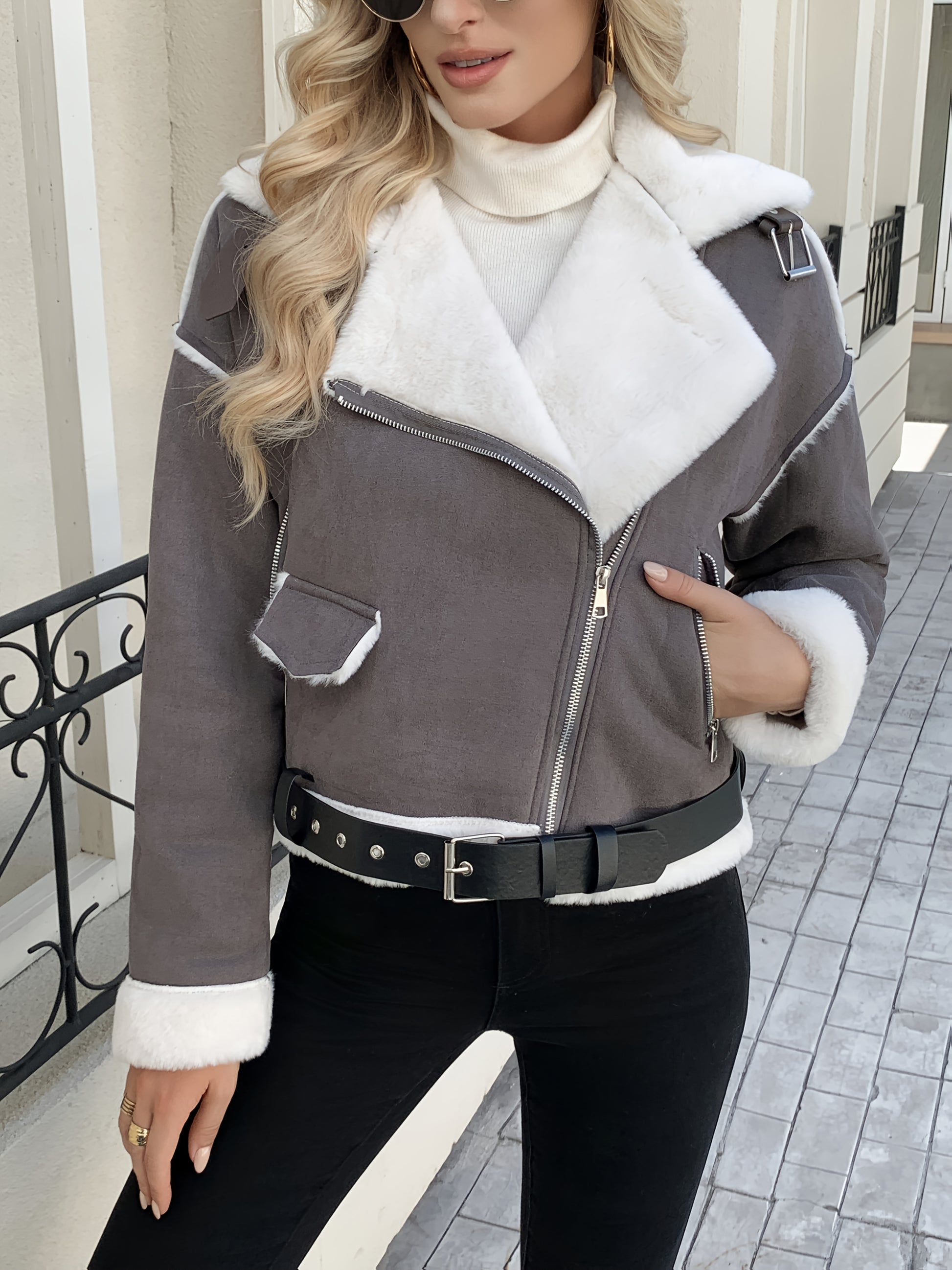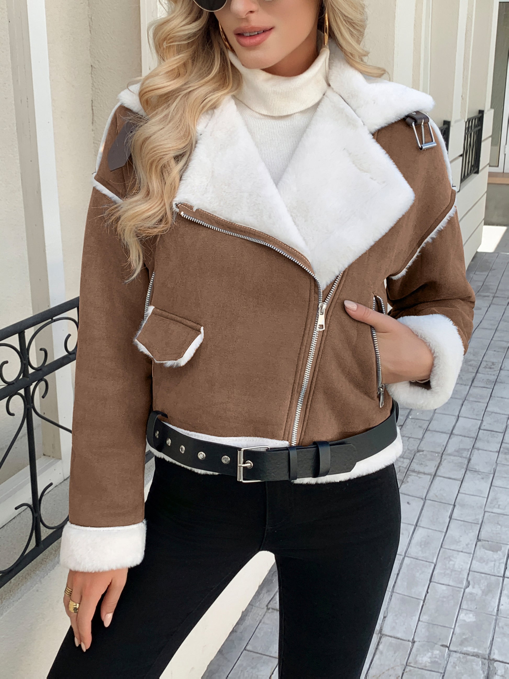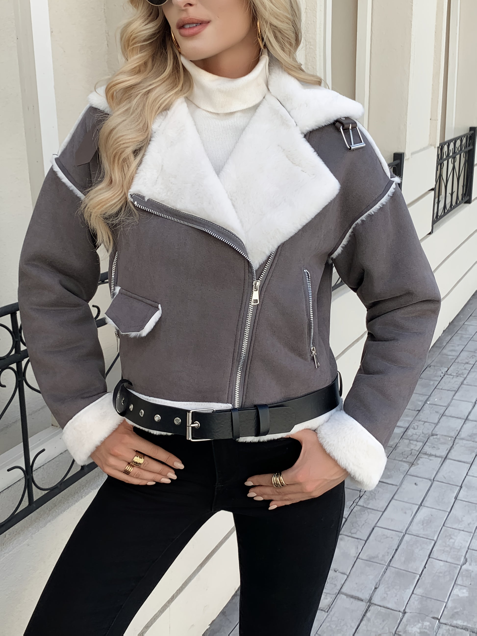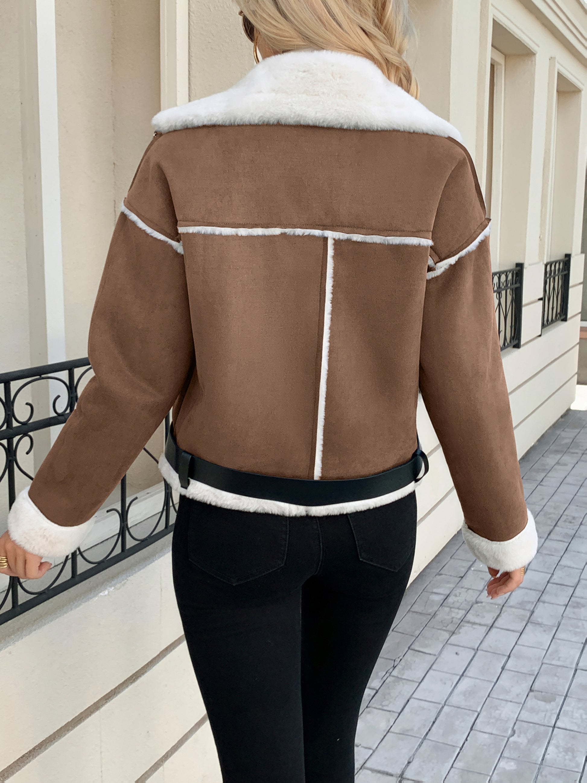 Կանացի ձմեռային բաճկոն՝ հաստ վերարկու՝ սպիտակ մորթե օձիքով և թևկապով - Էլեգանտ շագանակագույն վերնազգեստ, գոտիով գոտկատեղ (չձգվող)՝ աշուն/ձմեռ, լվացքի մեքենայով լվացվող՝ ցուրտ եղանակի համար (ոչ) - վերարկու զգեստների/կիսաշրջազգեստների համար