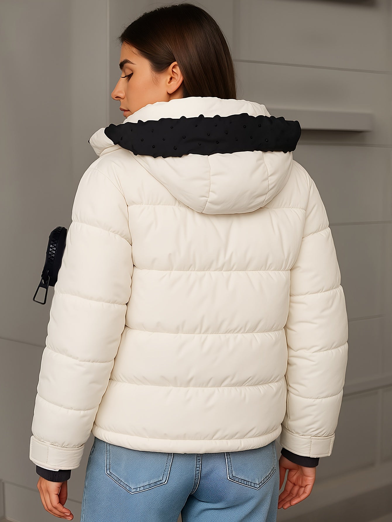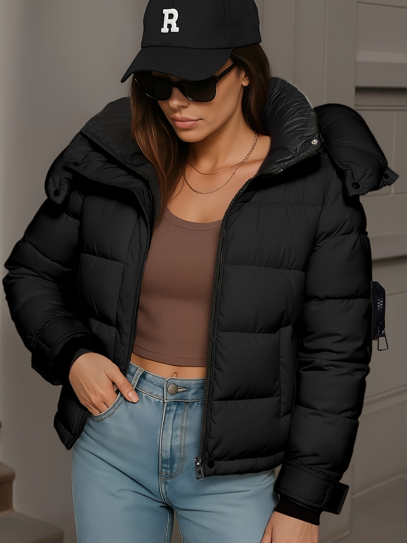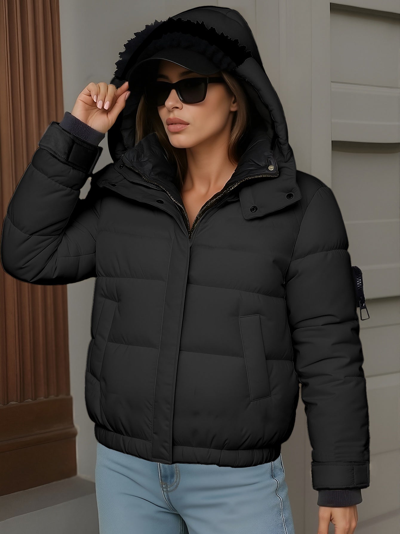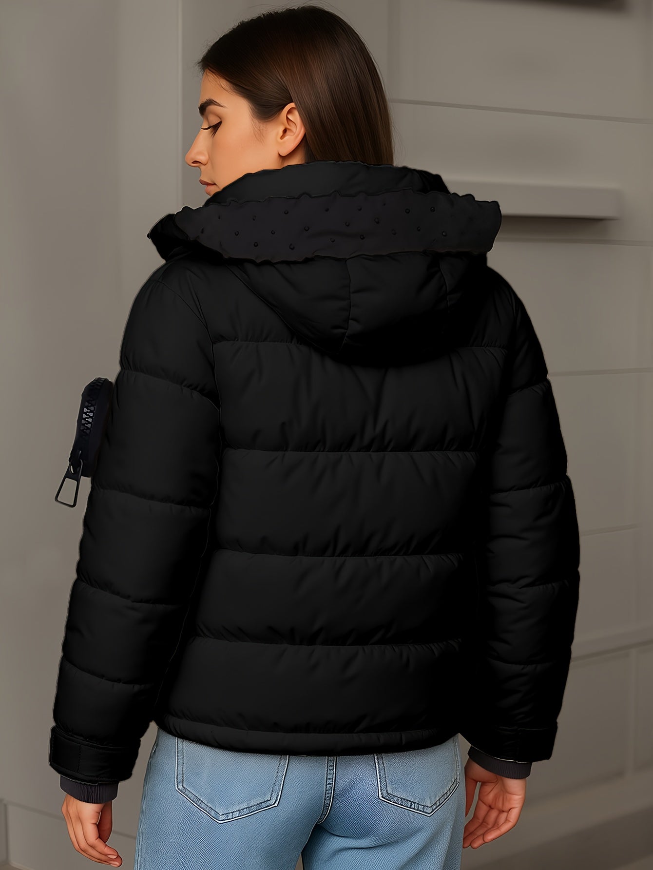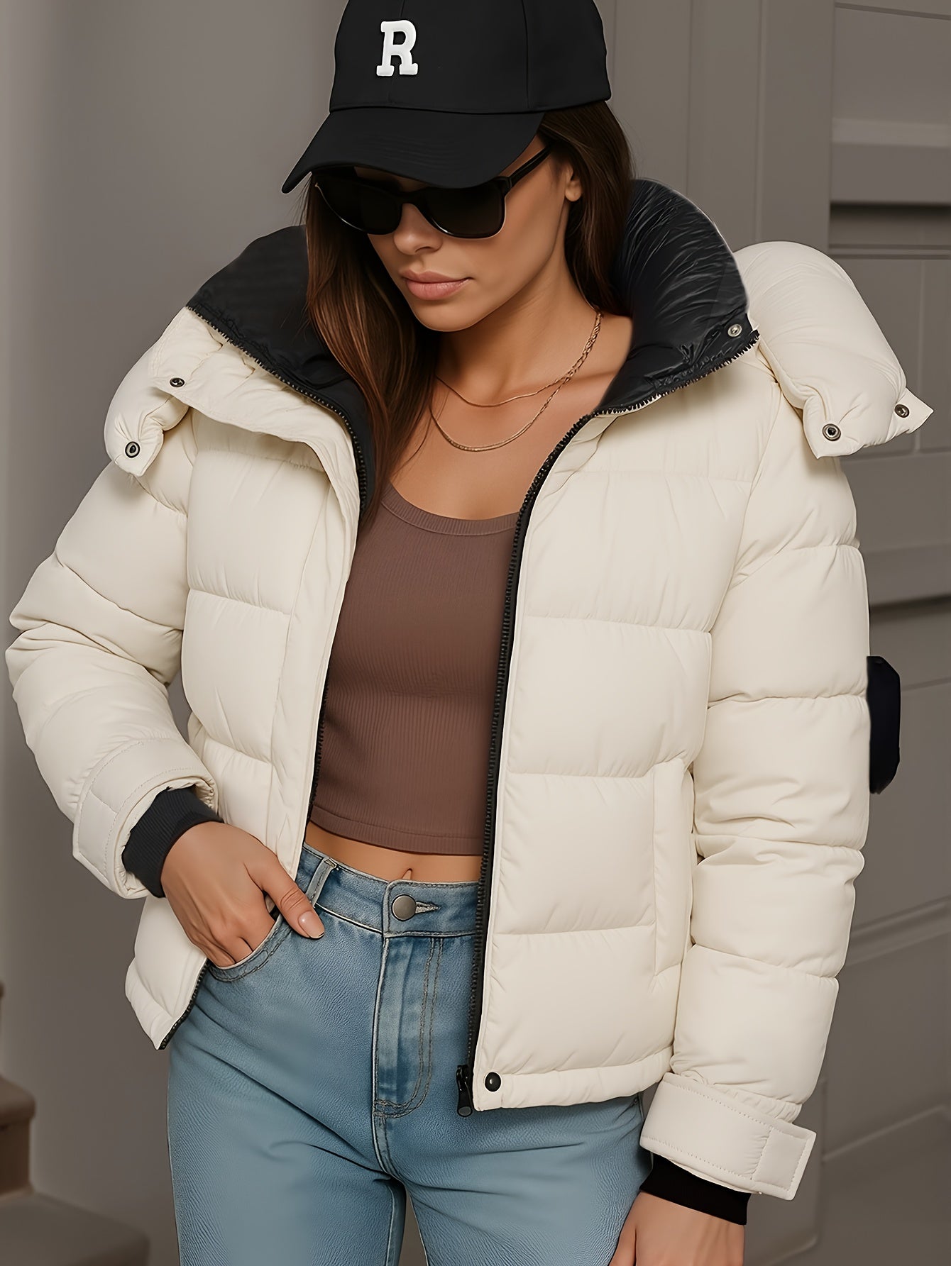 Կանացի ձմեռային կարճ գլխարկով բաճկոն՝ մանանեխի, դեղին և սև գույների հակադրությամբ, փքված վերարկու գրպաններով, գոտի և ամուր կայծակաճարմանդ, առօրյա, էլեգանտ վերնազգեստ ցուրտ եղանակի համար (ձեռքով լվացում/քիմմաքրում), հաստ ձմեռային բաճկոն կանանց համար, Win