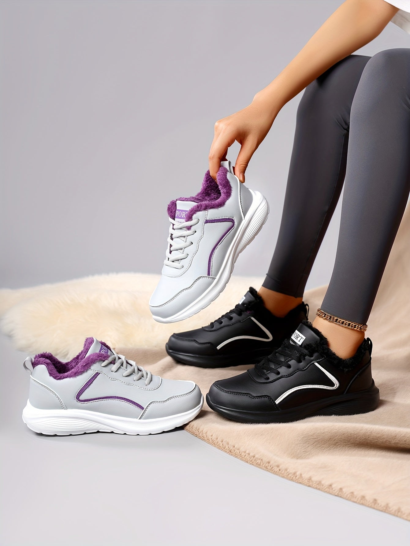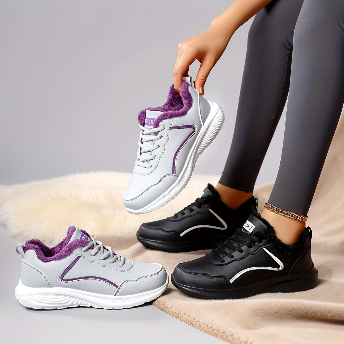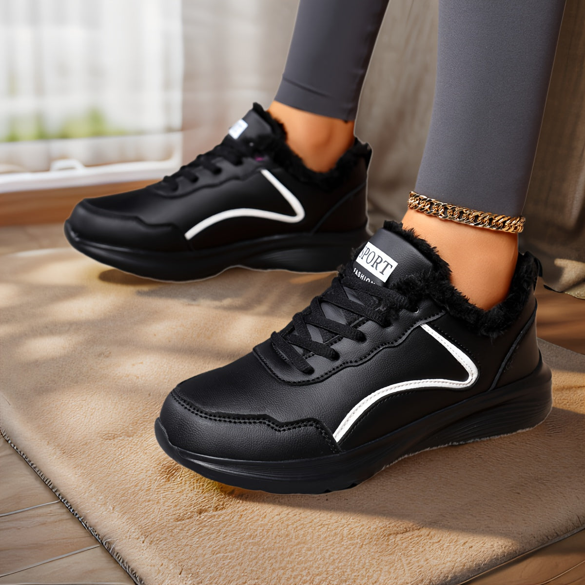 Կանացի ձմեռային ձնագնացքներ - Հաստ պլատֆորմային ներբան՝ լավ բռնման համար, թեթև ցրտադիմացկուն կոշիկներ՝ կապիչով, սահքից պաշտպանող EVA արտաքին ներբան - ամբողջովին սինթետիկ, արհեստական կաշվի նման վերին մաս - տաք, մեկուսացված՝ վազքի, արշավի և այլնի համար