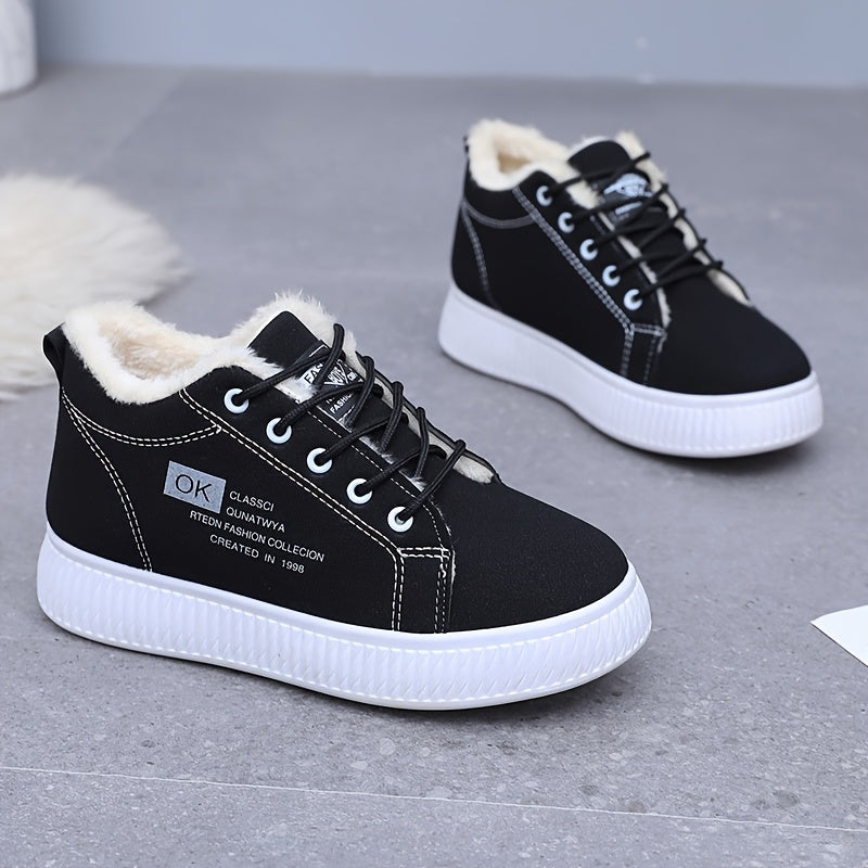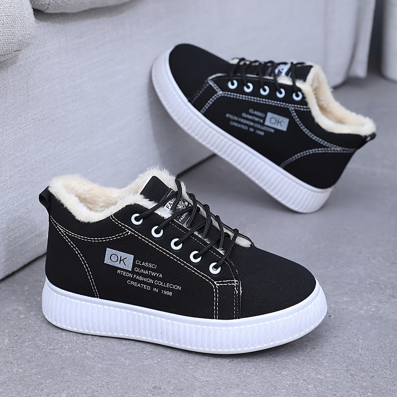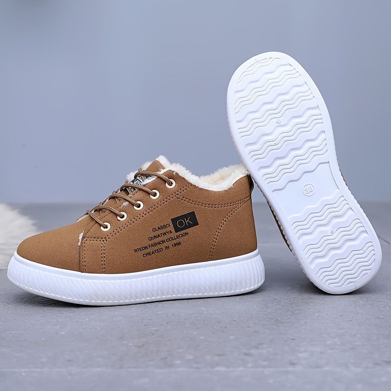 Կանացի ձմեռային ձնագնացքներ - Կաշվեանման օձիքով և փափուկ ներդիրով - Չսահող PVC ներբան, հաստ տաք շագանակագույն/բեժ արհեստական վերնամաս - ս/ Համատեղելի է սառույցի, ձյան, ցեխի համար - Ցուրտ եղանակի ճանապարհային կցում