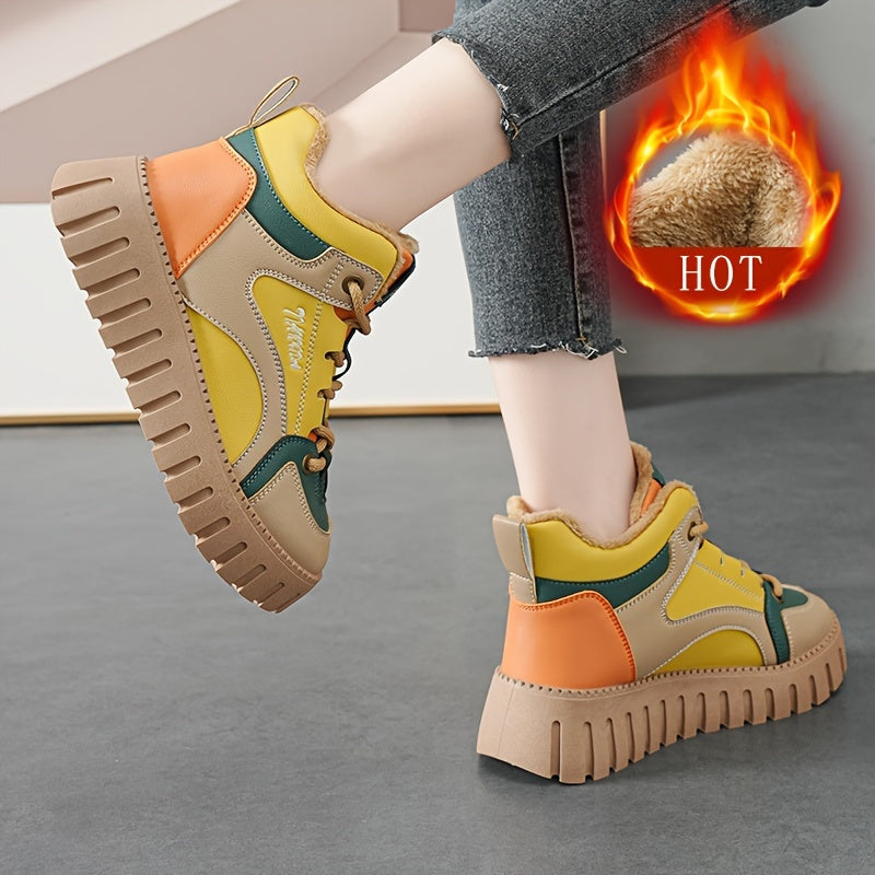 Կանացի ձմեռային ջերմային ձնագնացքներ, բրդյա երեսպատմամբ, բարձրացնող հարթակով, հաստ ներբանով, հարմարավետ, կապերով, միջին բարձրության խողովակաձև ճտքակոշիկներ: