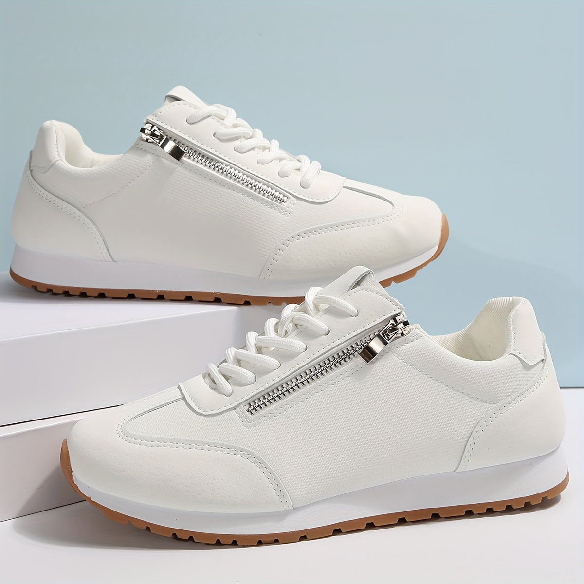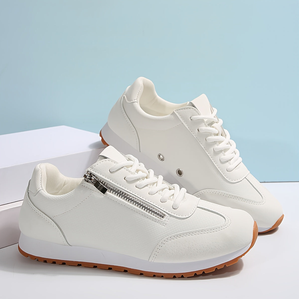 YMM980-11 Սպիտակ կողային կայծակաճարմանդ Նորաձև Նորաձև ժանյակավոր Հարմարավետ, թեթև, փափուկ շնչող, բազմակողմանի պատահական սպորտային կոշիկներ