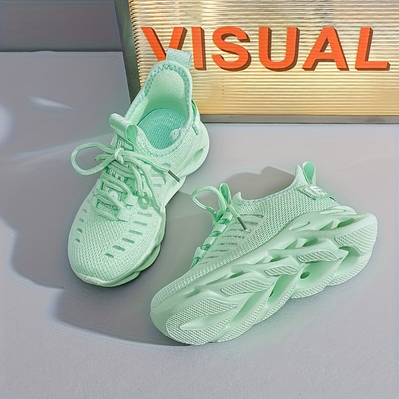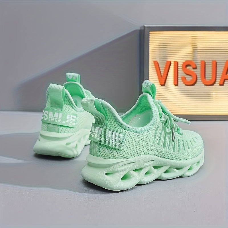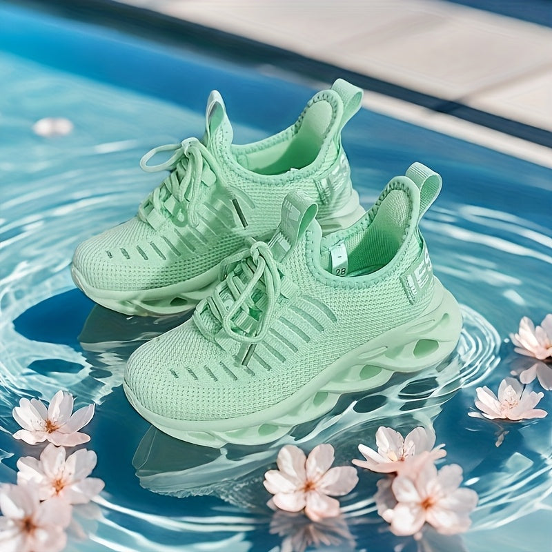 Youngsters' All-Season Breathable Running Shoes - Lightweight Mint Green Sneakers with Slip-On/Lace-Up Closure, Hollow-Out Design & MD Sole for Boys & Girls, Casual Training & Daily Wear, Kid Shoes, Sleek Sporty Design, Comfo