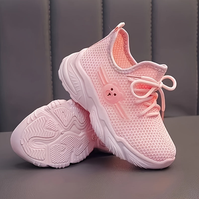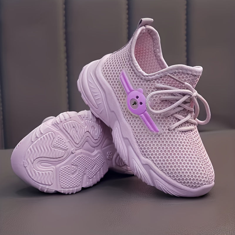 Youngsters' Breathable Lightweight Sneakers - Low-Top Lace-Up & Slip-On Design with Cute Bear Accents, Light Purple & Black Mesh & Fabric Upper, Cushioned PVC Sole for Boys & Girls, Summer Casual Shoes, Youngsters Sneakers, P