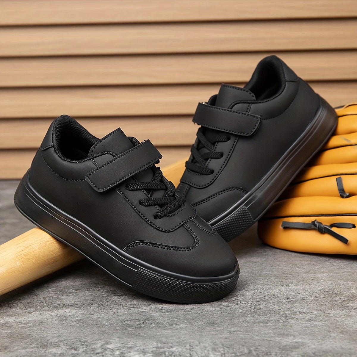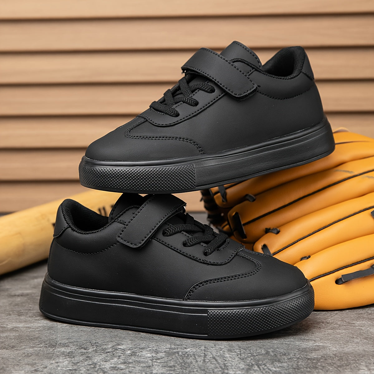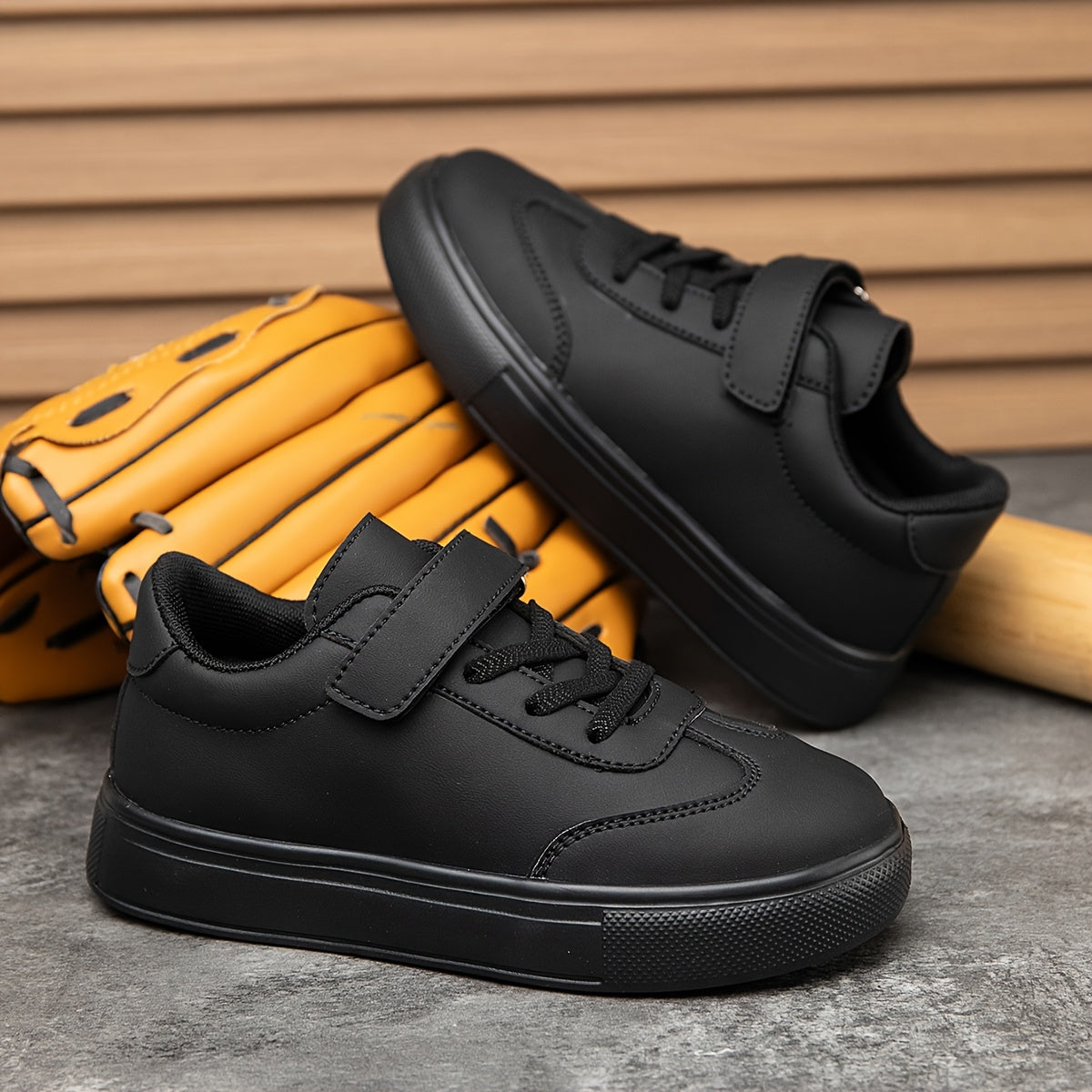 Սև դիզայնով մանկական սպորտային կոշիկներ, թեթև և հարմարավետ, ցածր վերնամասով կոշիկներ՝ փակվող կոճակով, տղաների և աղջիկների համար - իդեալական են ամենօրյա հագուստի համար, մանկական կոշիկներ, շնչող մանկական կոշիկներ