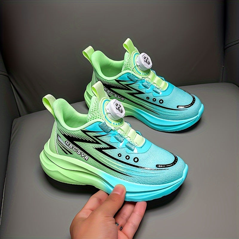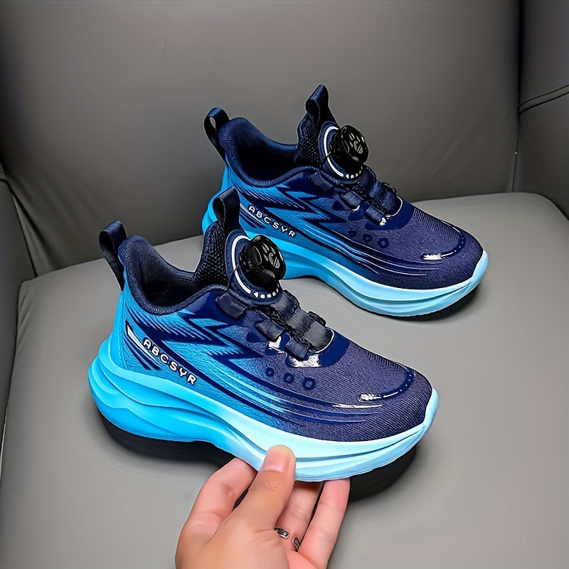 Մանկական պտտվող ճարմանդով սպորտային կոշիկներ՝ շնչող ցանցե սպորտային կոշիկներ տղաների և աղջիկների համար, մուգ կապույտ՝ գծավոր դիզայնով, թեթև EVA ներբանով, առօրյա և վազքի համար, միայն ձեռքով կամ քիմմաքրմամբ