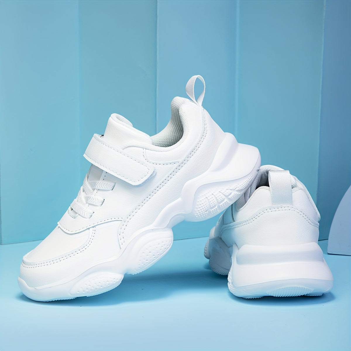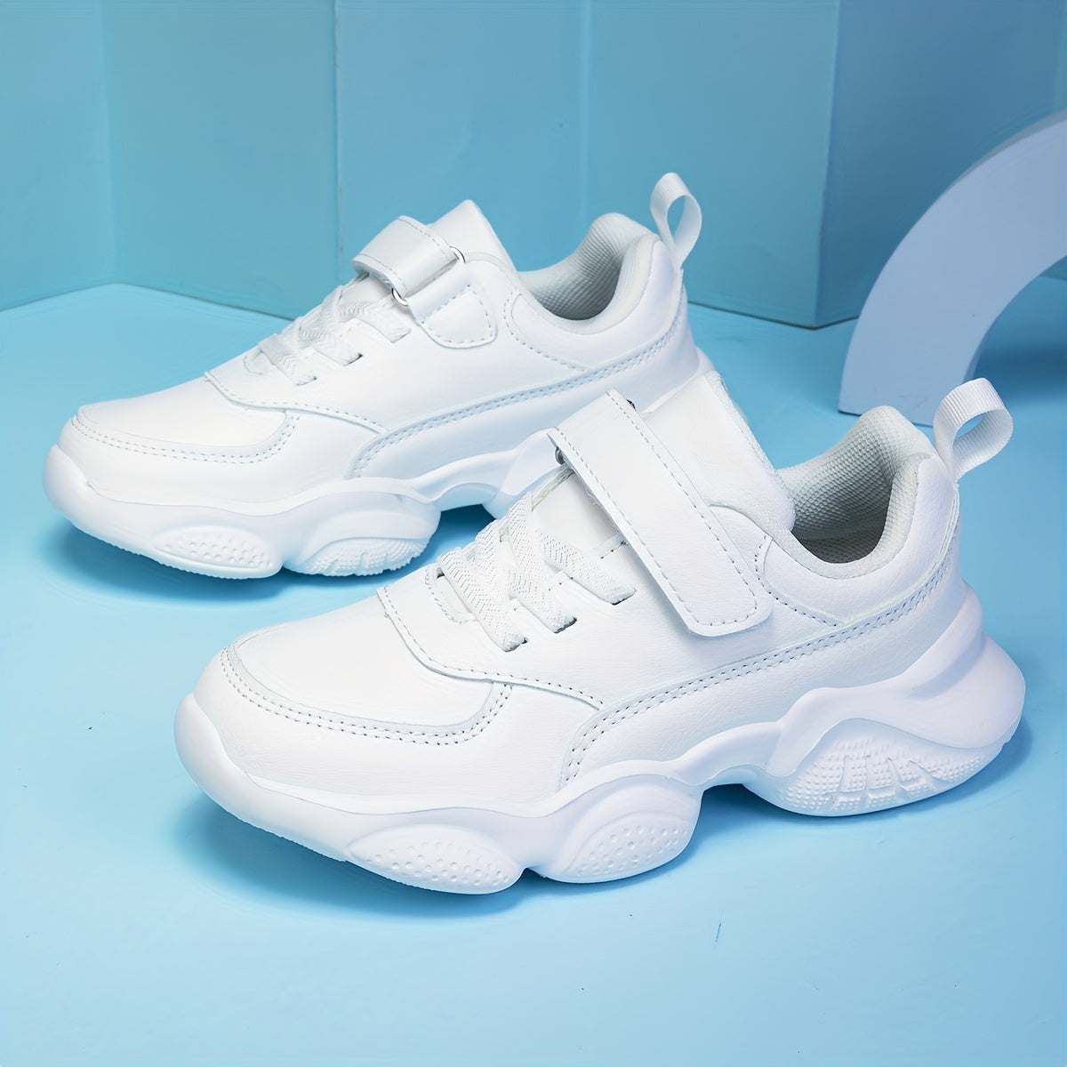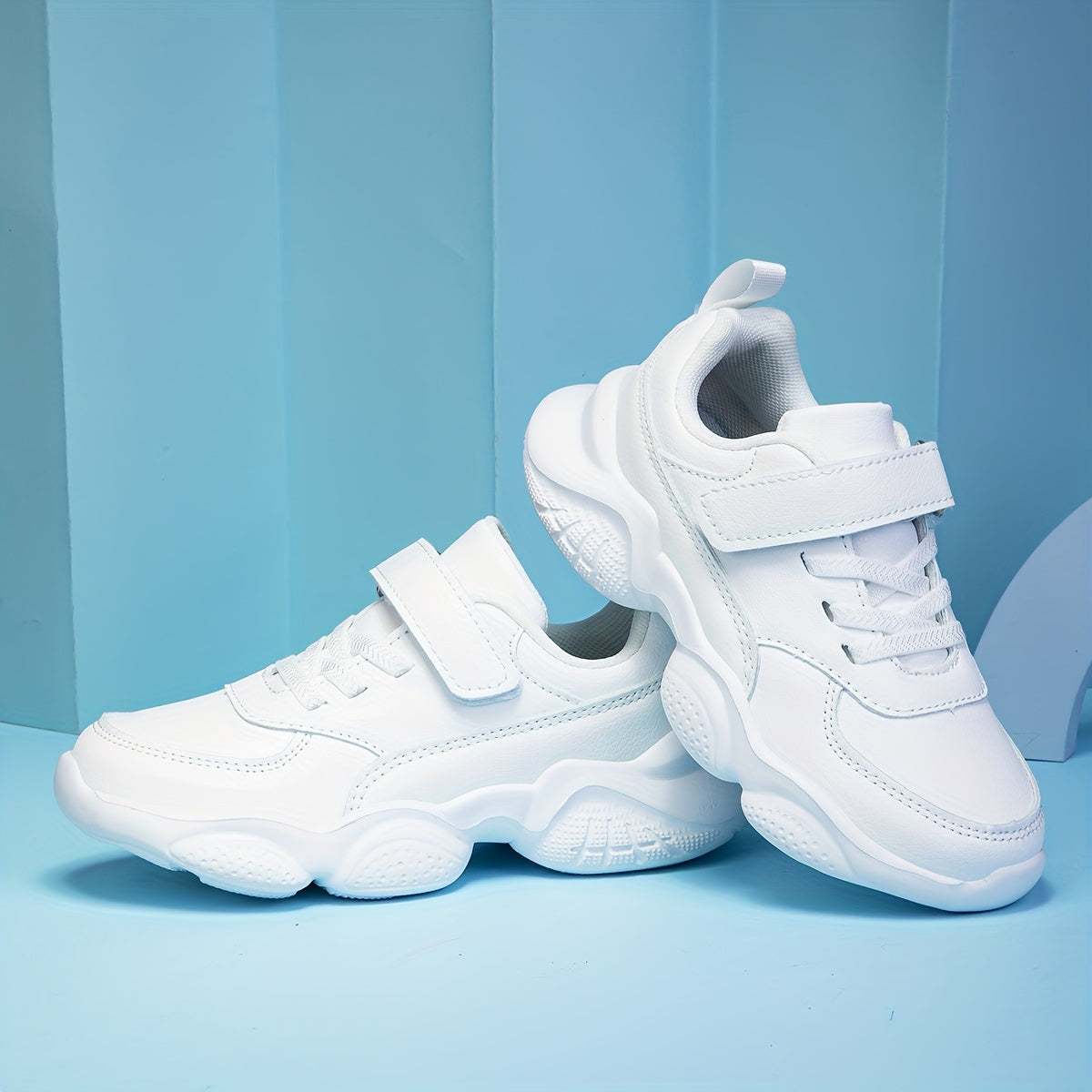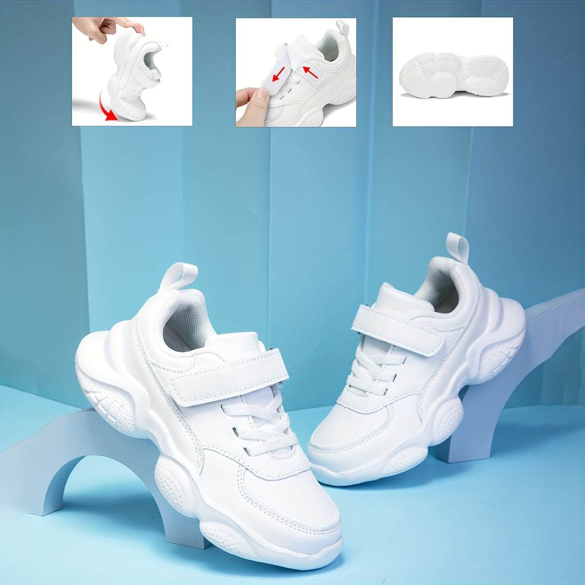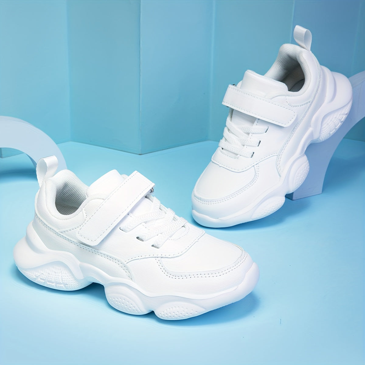 Մանկական սպիտակ հաստ կոշիկներ՝ կարգավորվող կեռիկ-օղակաձև ամրակով, հեշտ սահող, չսահող EVA ներբան, հարմարավետ աստառ, բազմակողմանի՝ դպրոցի և սպորտի համար, բոլոր եղանակների հագուստ, դպրոցական կոշիկներ | նորաձև հաստ կոշիկներ | դիմացկուն