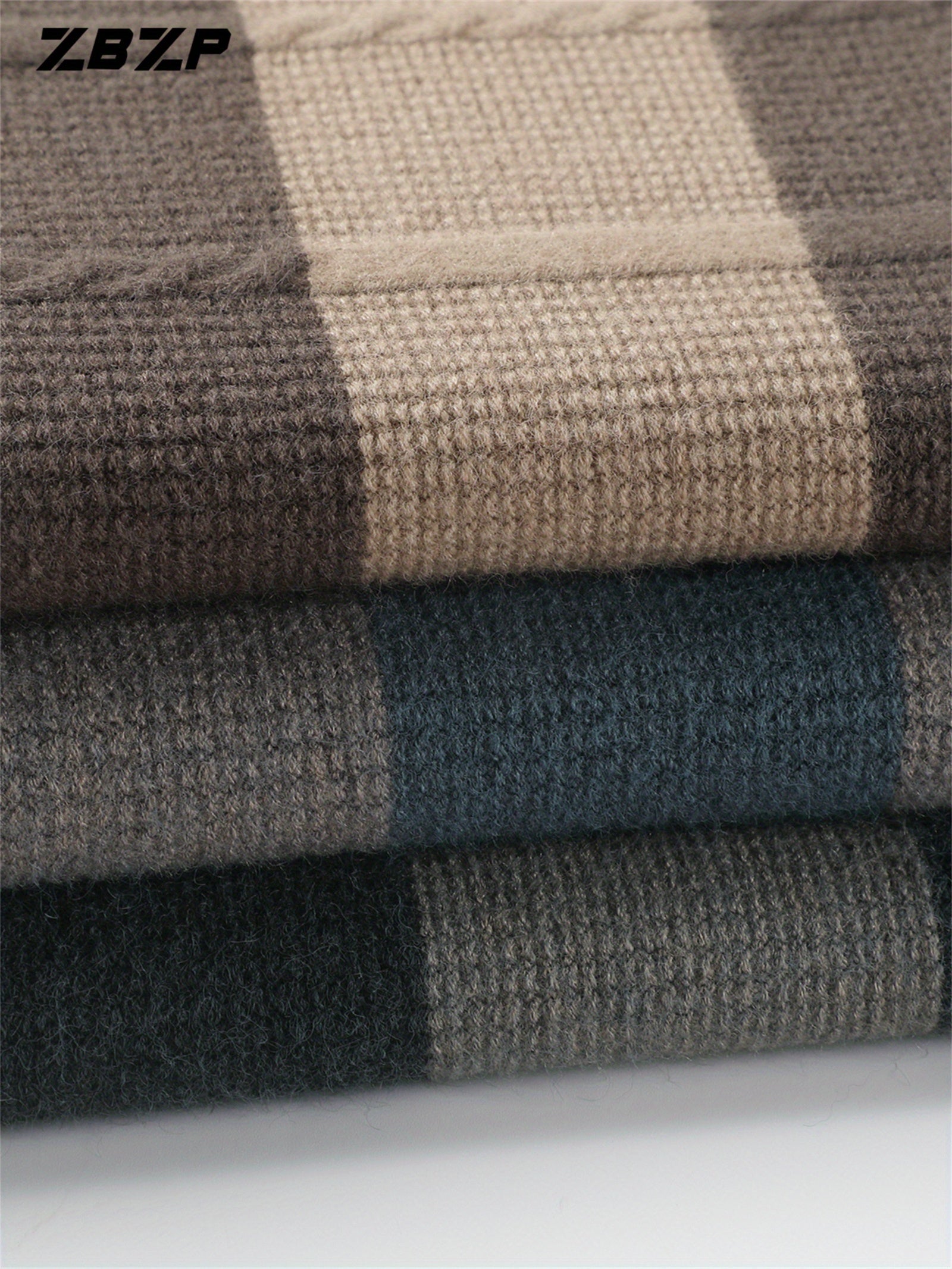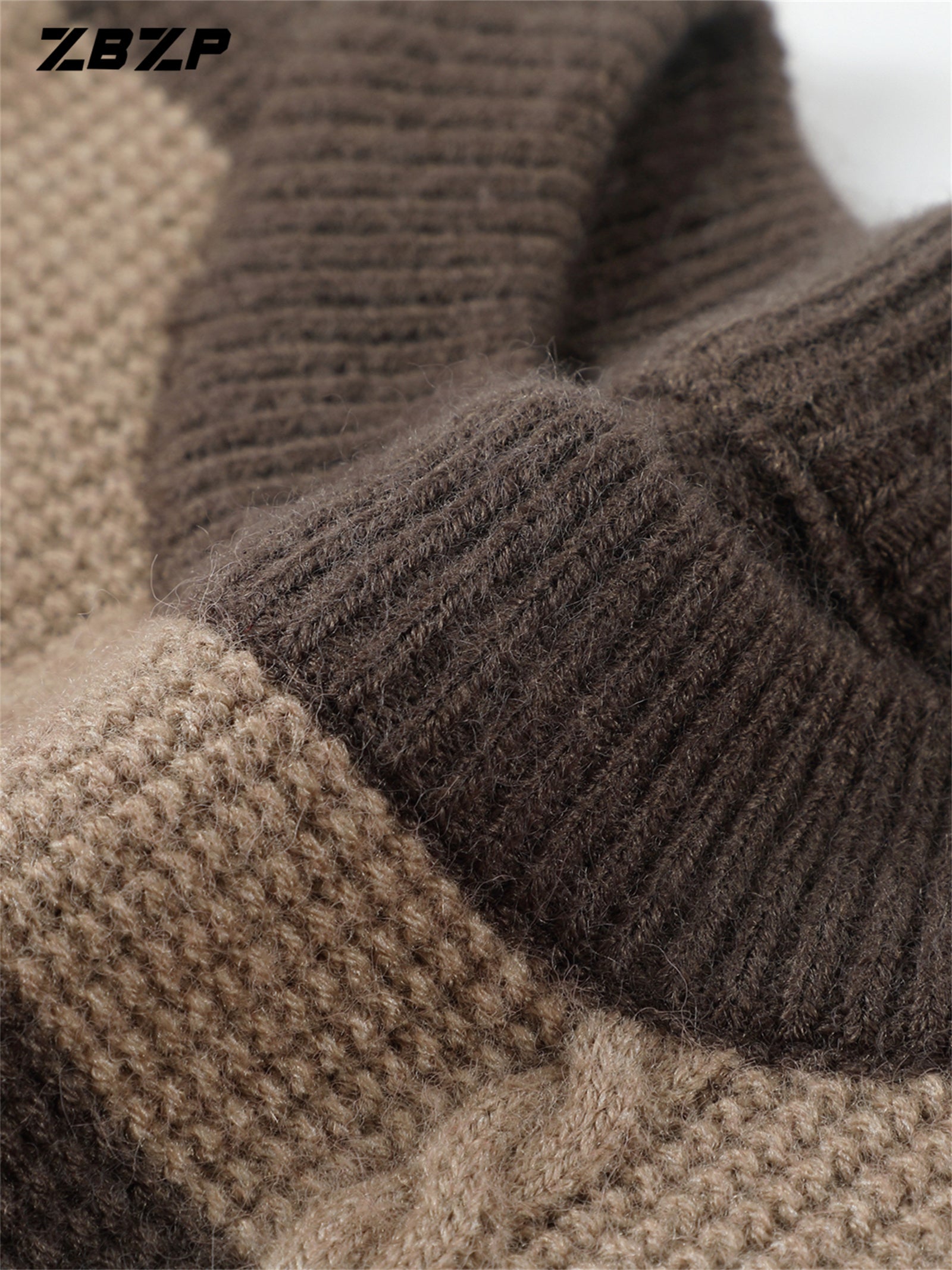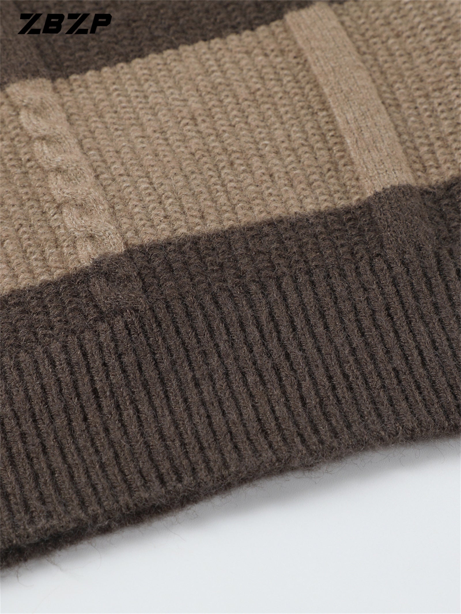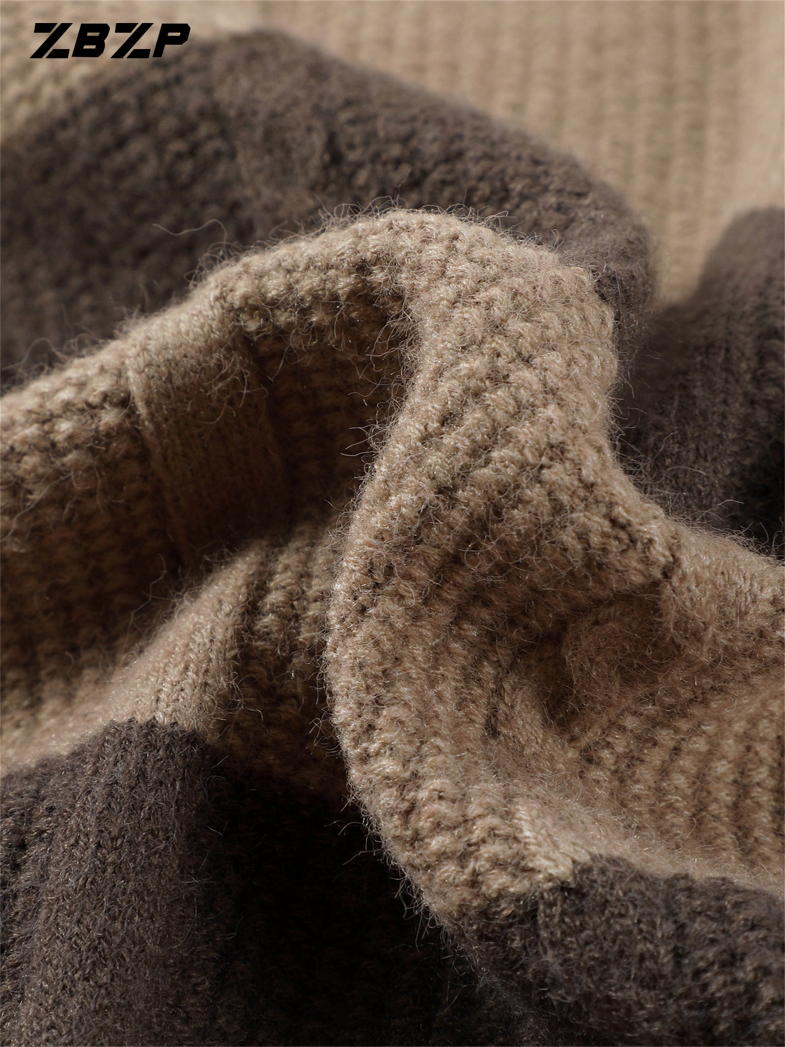 ZBZP Men'S Casual Striped Knit Sweater - Dark Gray & White Horizontal Stripes, Round Neck Long Sleeve, Regular Fit, Autumn Winter Warm Pullover for Casual Attire, Knit Sweater, Comfortable Fashion, Soft Texture, Cold Weather